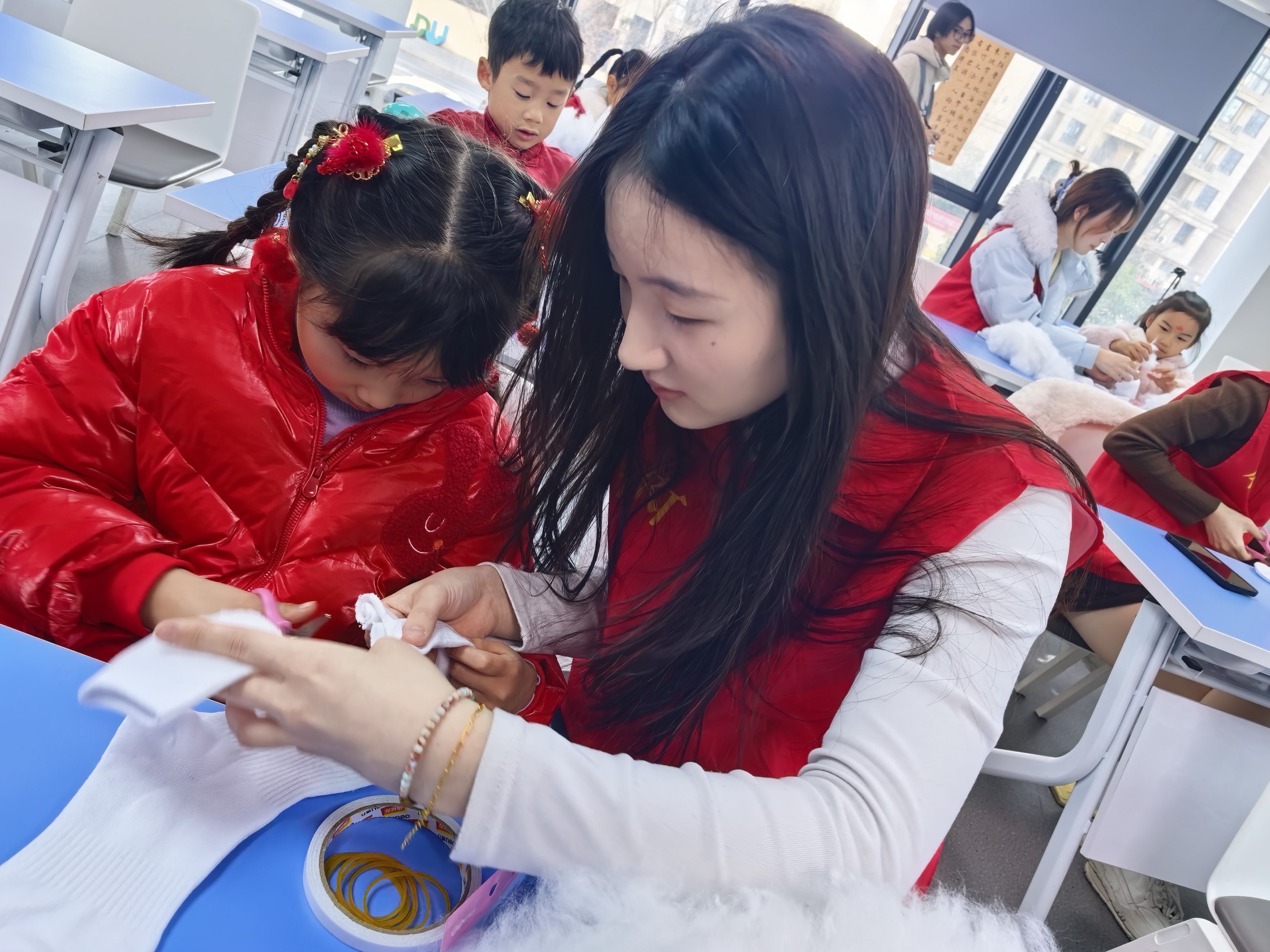 布艺童心织梦柯桥 通讯员:柯桥区华舍中心幼儿园锦绣园区 翁丹丹 近日,华舍中心幼儿园教育集团锦绣园区联合浙江工业大学之江学院设计学院、华舍街道纺都社区,开展了社区活动——“袜子改造魔法”创意手工教学活动。 活动中,志愿者向儿童生动讲解了冬季雪人与蘑菇的造型特点。在志愿者们的耐心指导下,孩子们亲手揉捏棉花填充袜身,细心为小雪人粘贴纽扣眼睛、裁剪布料围巾,充分发挥想象力制作出了形态各异的雪人。 孩子们在活动中不仅锻炼了手眼协调能力与专注力,也增强了对季节之美与旧物再造的感知。