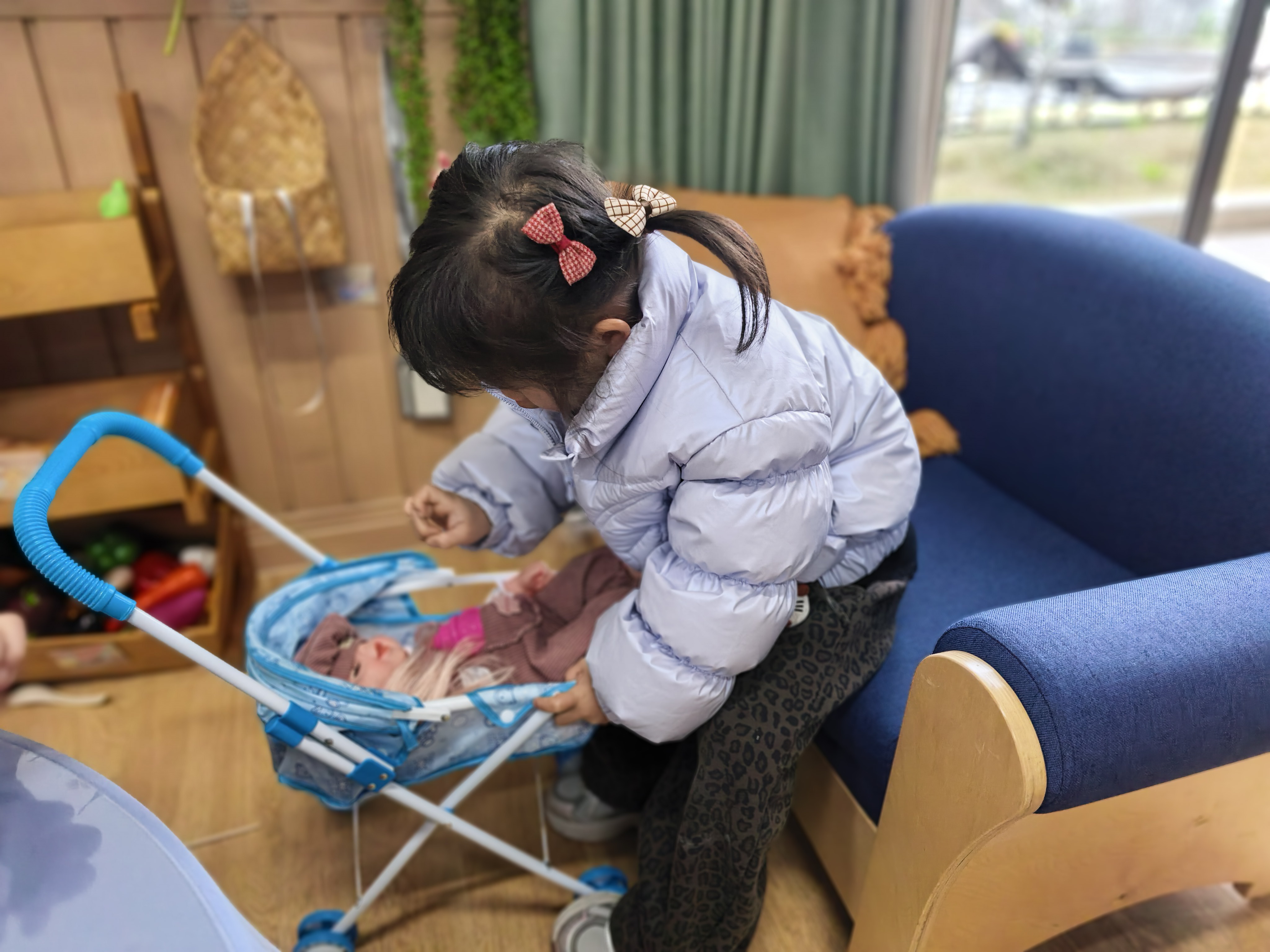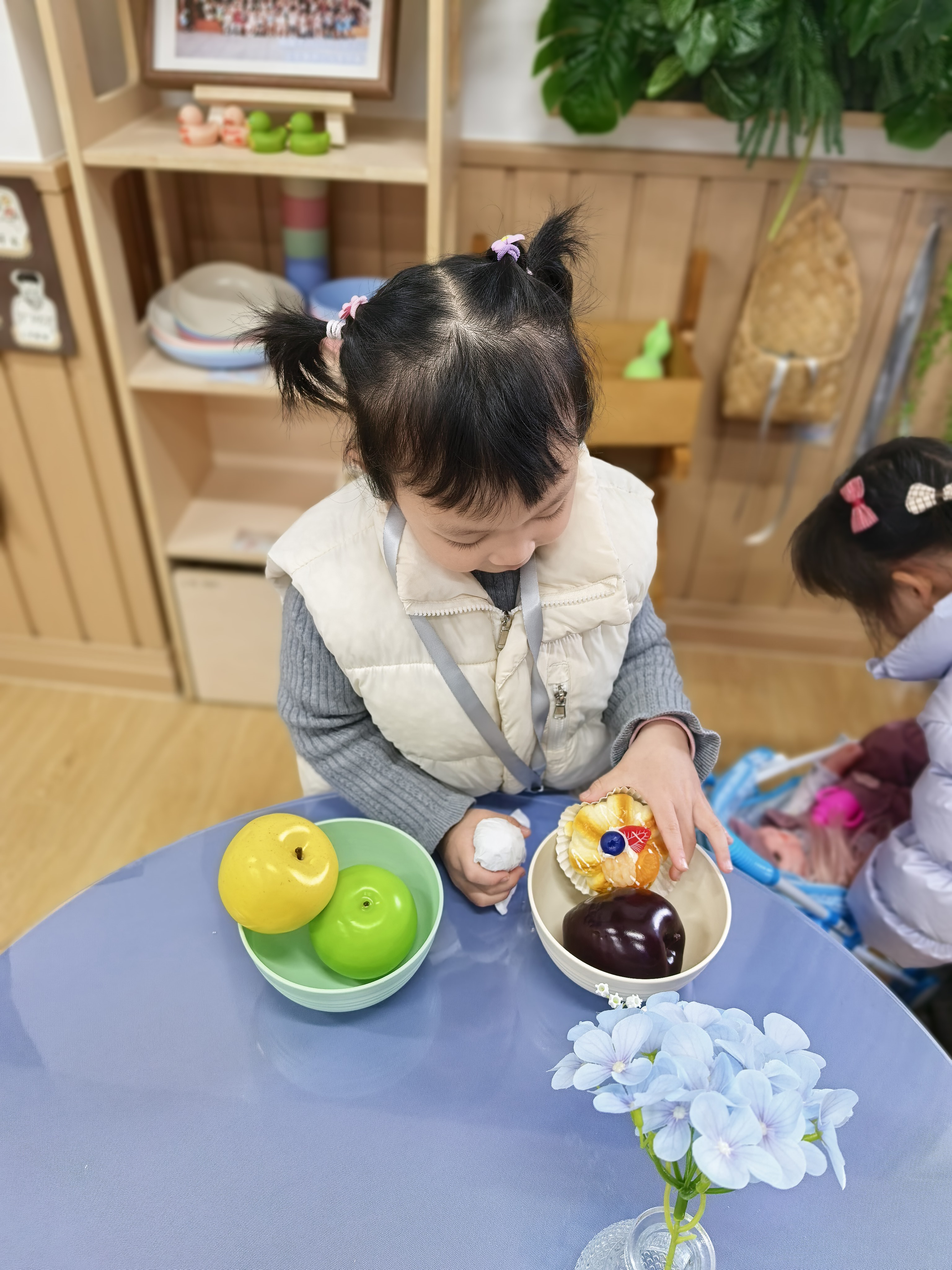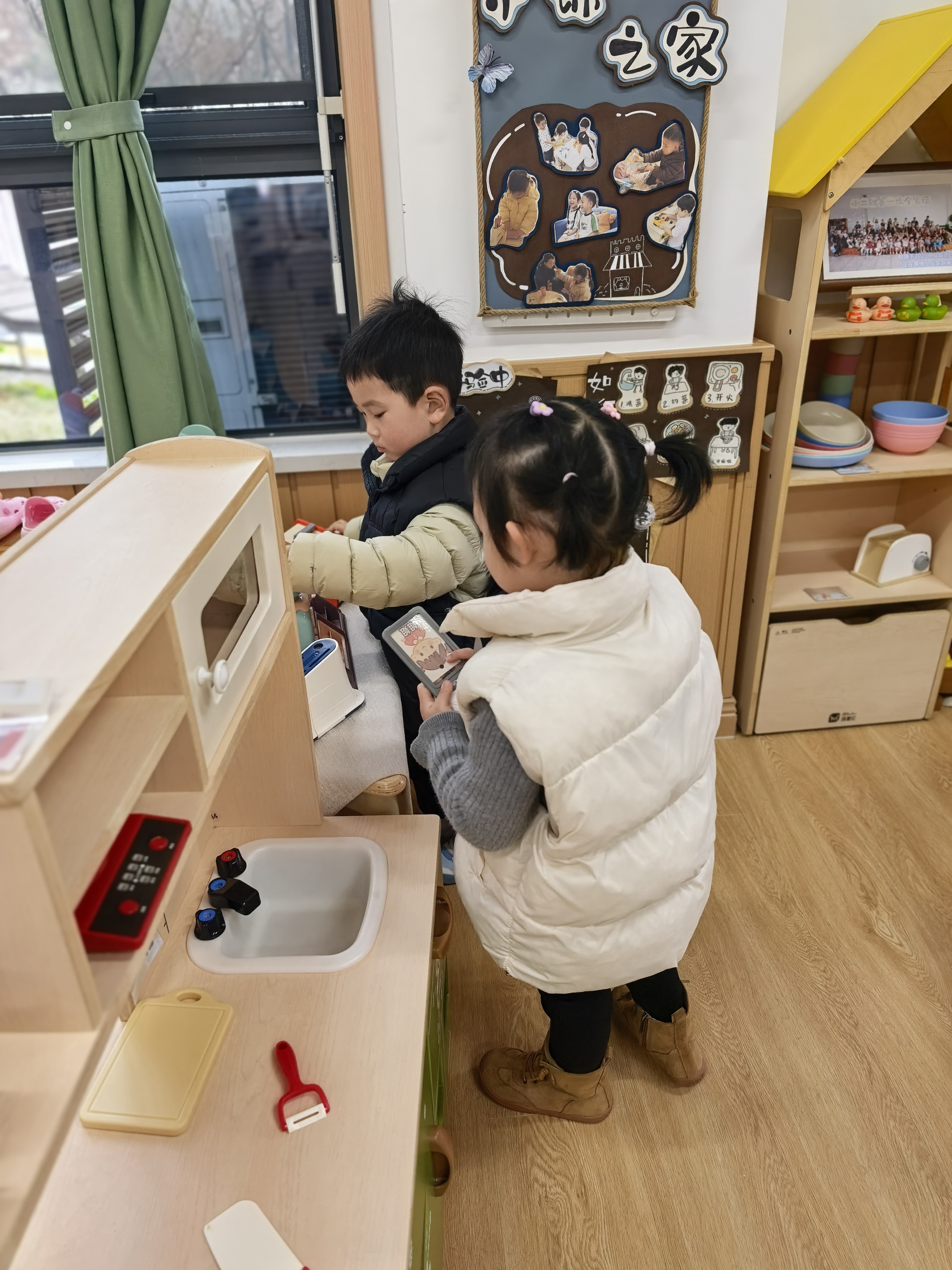 小厨师的快乐过家家 通讯员:华舍中心幼儿园教育集团锦绣园区 翁丹丹 在温馨的角色区里,小班的宝贝们正沉浸在扮家家的游戏中。 有的宝贝轻轻推着婴儿车,细心照顾着怀里的“娃娃宝宝”,学着妈妈的模样温柔呵护;有的宝贝围在小餐桌旁,认真摆弄着仿真水果和点心,专注地准备“美味餐点”;还有的宝贝在小厨房灶台前忙碌,和小伙伴一起“洗菜做饭”,模仿着生活里的家务场景。 在充满童趣的角色扮演里,孩子们不仅锻炼了社交与动手能力,更在模仿中感受着生活的温暖与乐趣。