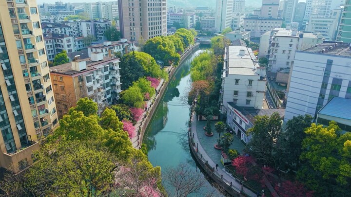 春日沐浴下,武林街道桃花河的桃花花开正艳。(来源:武林街道)