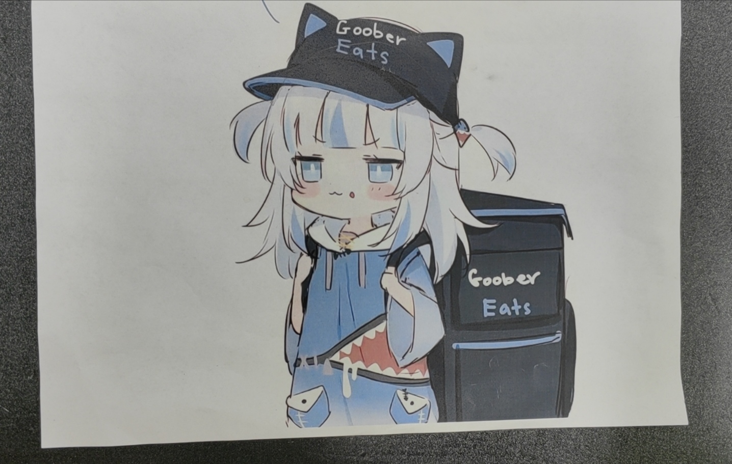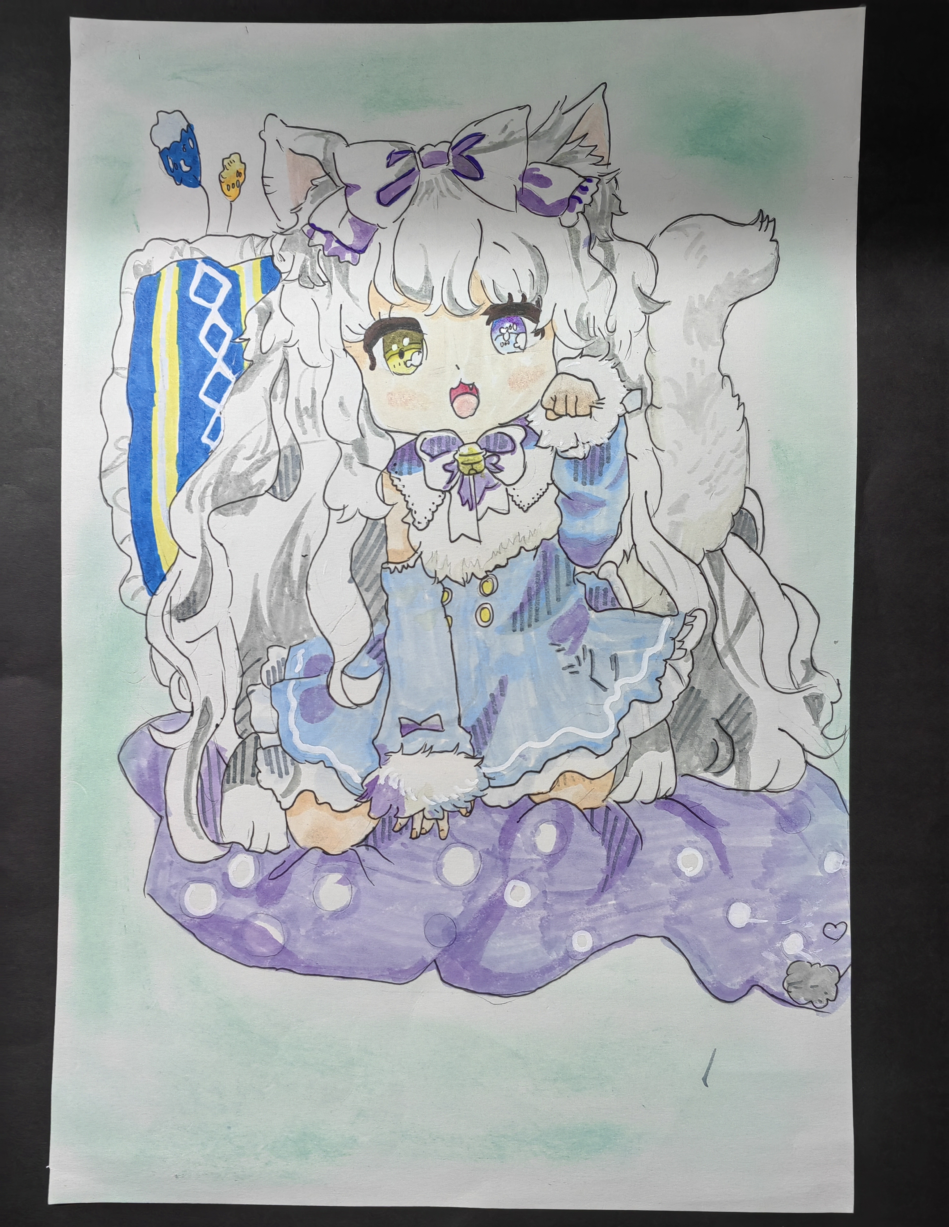 绍兴市柯桥区实验小学 四(5)班 陈思妍 初次尝试,画了超可爱的Goober Eats配送员!银发小啾啾,猫耳帽配鲨鱼🦈裤。希望下次画更萌的卡通。