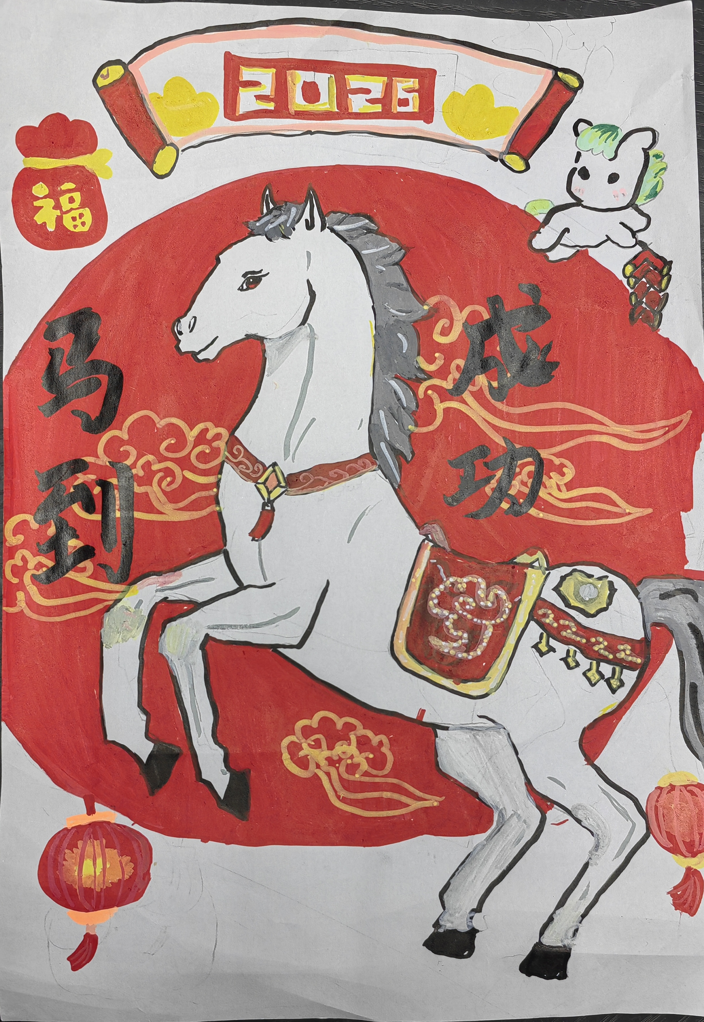 画匹白马贺新春 祝大家新的一年 马到功成!!! 绍兴市柯桥区实验小学 四(5)班 陈思妍