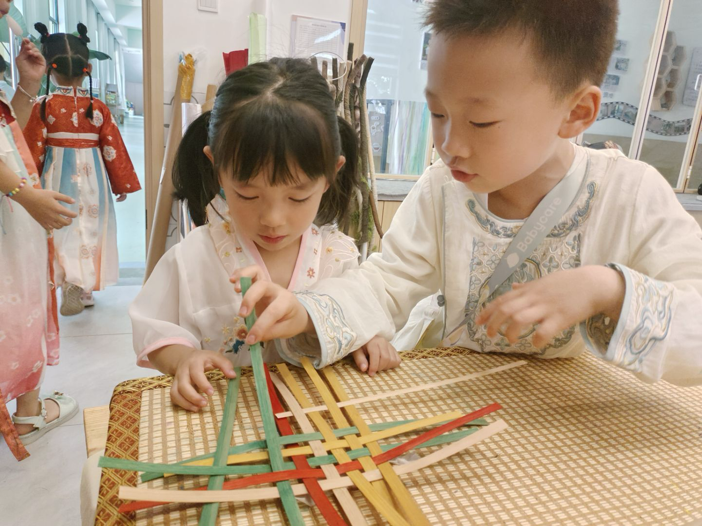 萌娃“指尖探非遗” 编织文化浸润童心 近日,兰亭中心幼儿园小二班参加了一场别开生面的非遗编织文化体验活动。孩子们在老师与大班哥哥姐姐的陪伴下,通过触摸竹编、草编等传统技艺,感受非遗的独特魅力,在动手实践中播撒文化传承的种子。孩子们化身“小小非遗代表性传承人”,和哥哥姐姐开启竹编的创作之旅。