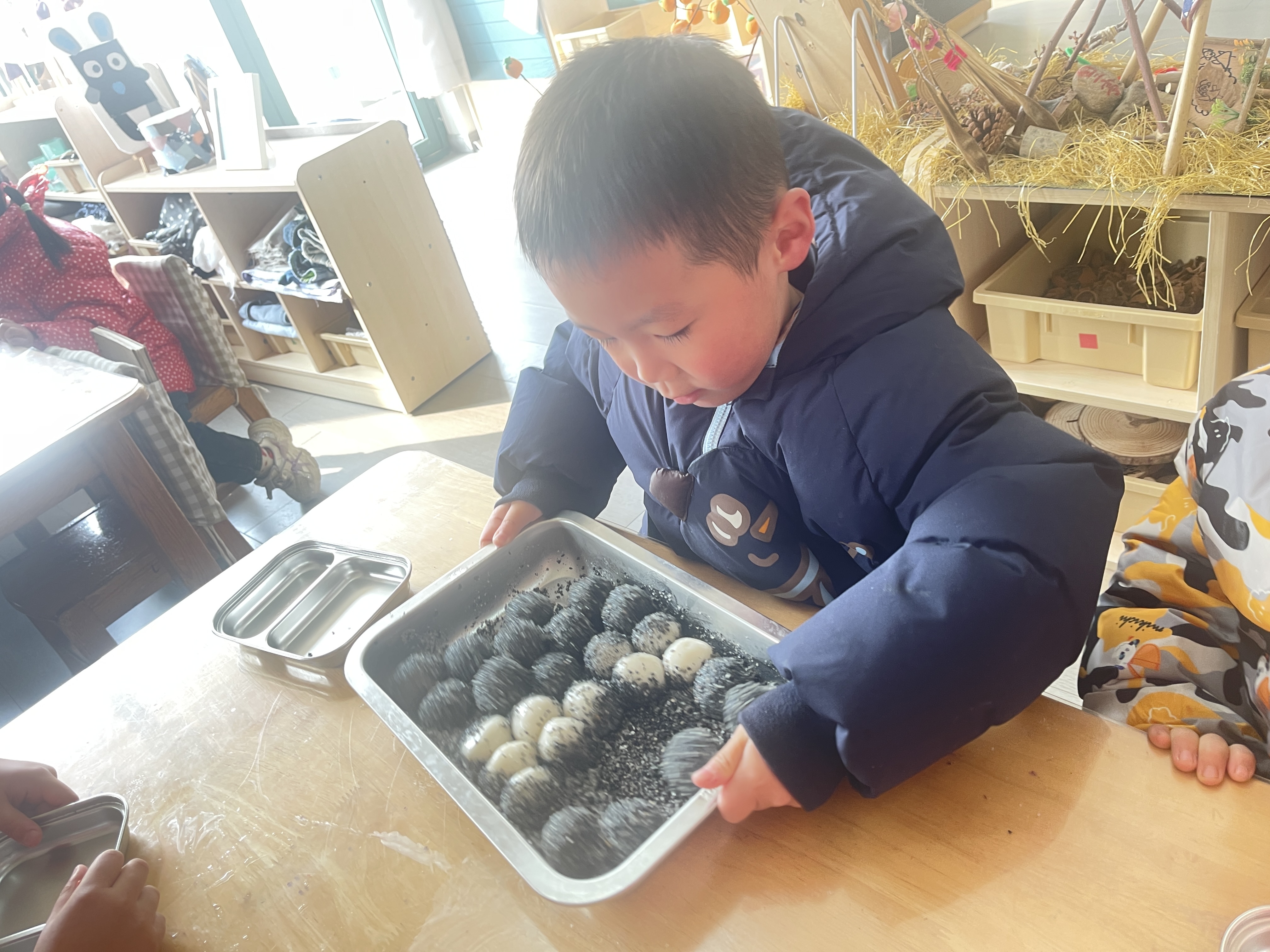 中班萌娃巧手做 芝麻糯米团香满园 近日,兰亭中心幼儿园中二班开展了一场充满趣味的芝麻糯米团DIY活动,孩子们化身小小美食家,在动手实践中体验传统美食的魅力。 活动伊始,老师为孩子们讲解了糯米团的制作步骤,并展示了糯米粉、温水、黑芝麻、白糖等食材。在老师的指导下,孩子们迫不及待地开始操作:先将糯米粉与温水混合,揉成光滑的面团;再揪起一小块面团,搓成圆圆的小球;最后滚上香香的黑芝麻白糖粉。 过程中,孩子们专注又认真,有的小手沾满了面粉,有的搓出了“奇形怪状”的糯米团,现场笑声不断。当一个个软糯香甜的糯米团完成时,孩子们脸上洋溢着满满的成就感,纷纷品尝起自己的劳动成果,嘴里还念叨着:“太好吃啦!” 此次活动不仅锻炼了孩子们的手部精细动作和动手能力,更让他们在亲身体验中感受了制作美食的乐趣,传承了传统饮食文化。