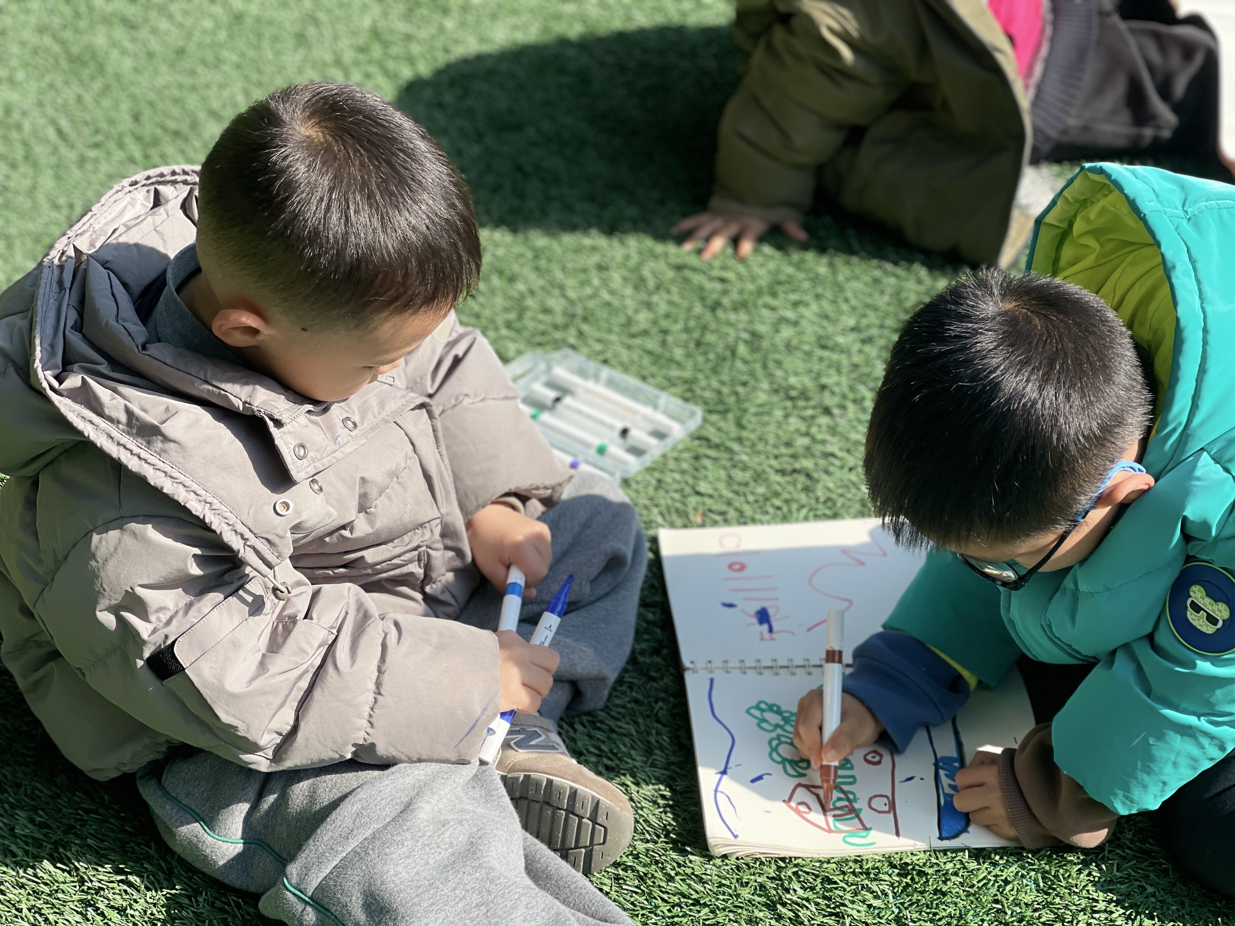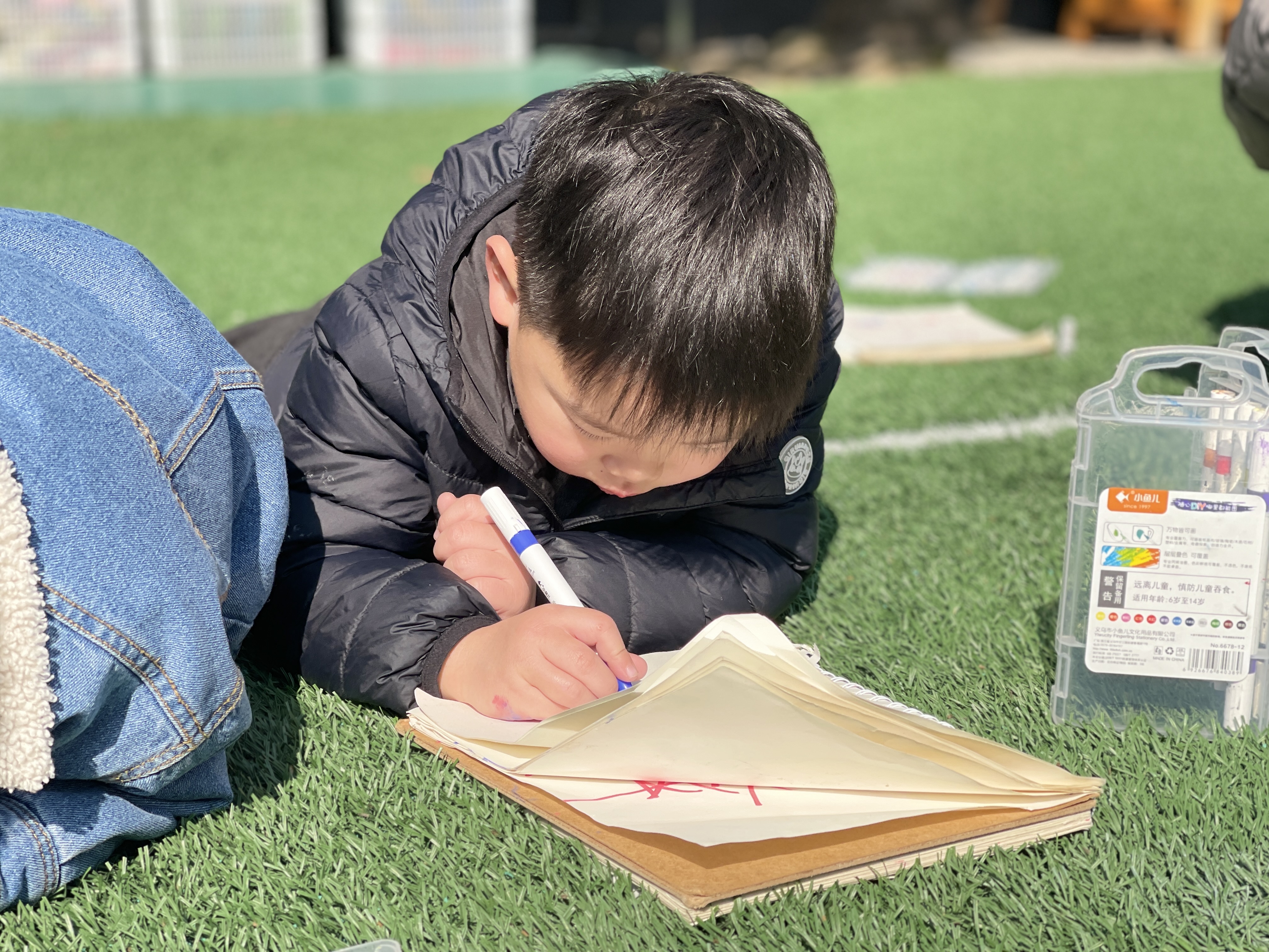 中班萌娃绘童趣 操场变身创意画纸 近日,兰亭中心幼儿园的操场上热闹非凡,中二班的孩子们正拿着画笔,在宽阔的地面上尽情挥洒创意,一场别开生面的“操场涂鸦”活动欢乐开启。 活动中,孩子们挣脱了画纸的束缚,或蹲或跪,或站或趴,用五颜六色的画笔勾勒心中的美好。灵动的小动物、鲜艳的花朵、可爱的卡通人物……一幅幅充满童真的画作在地面上渐渐显现。 创作过程中,孩子们时而认真构思,时而互相交流,时而合作涂鸦,欢笑声、讨论声此起彼伏。老师们则在一旁细心引导,记录下孩子们的奇思妙想。 此次活动不仅为孩子们提供了自由创作的空间,激发了他们的想象力和艺术表现力,更让孩子们在亲近自然的过程中,体验到集体创作的乐趣。