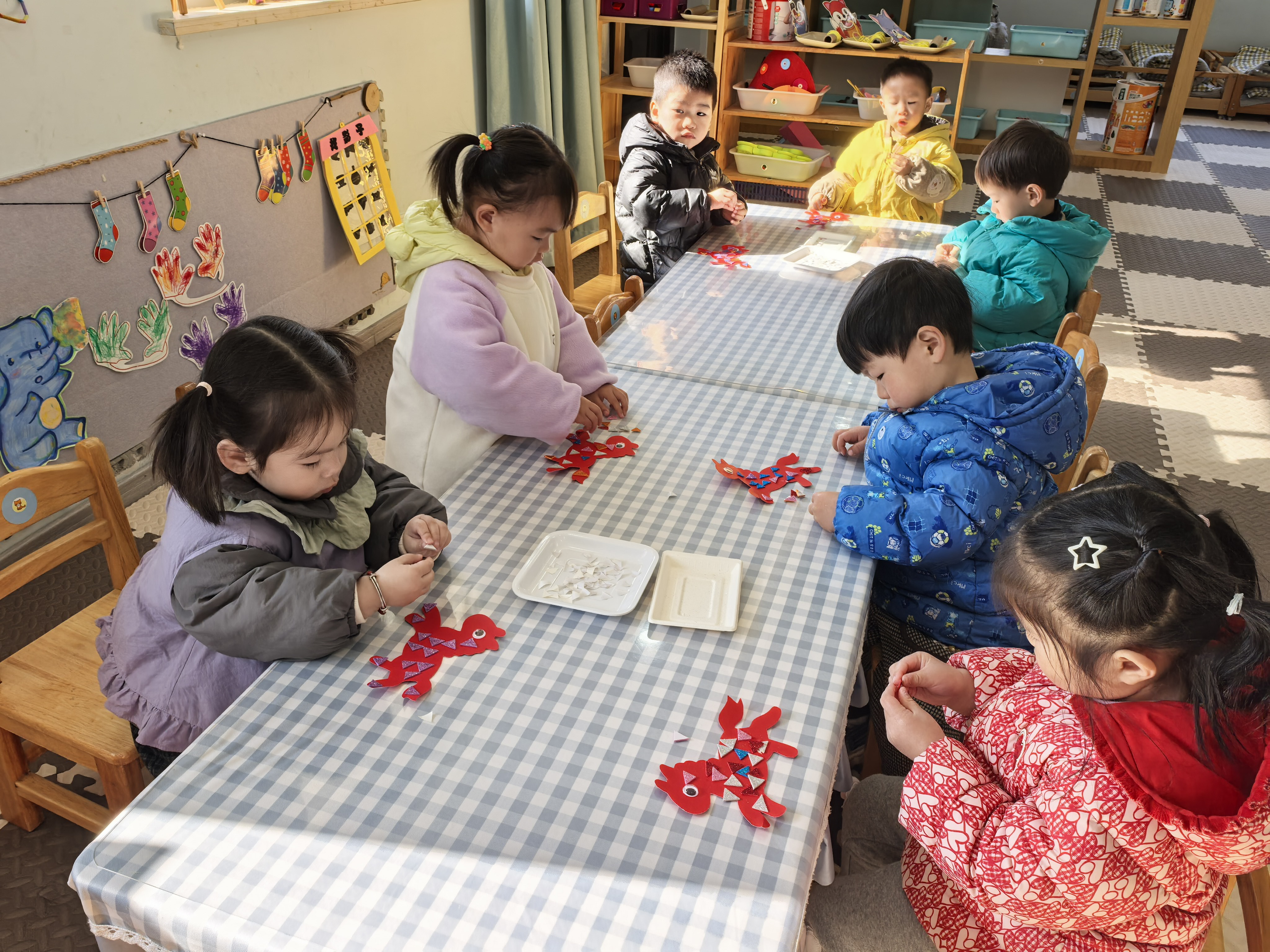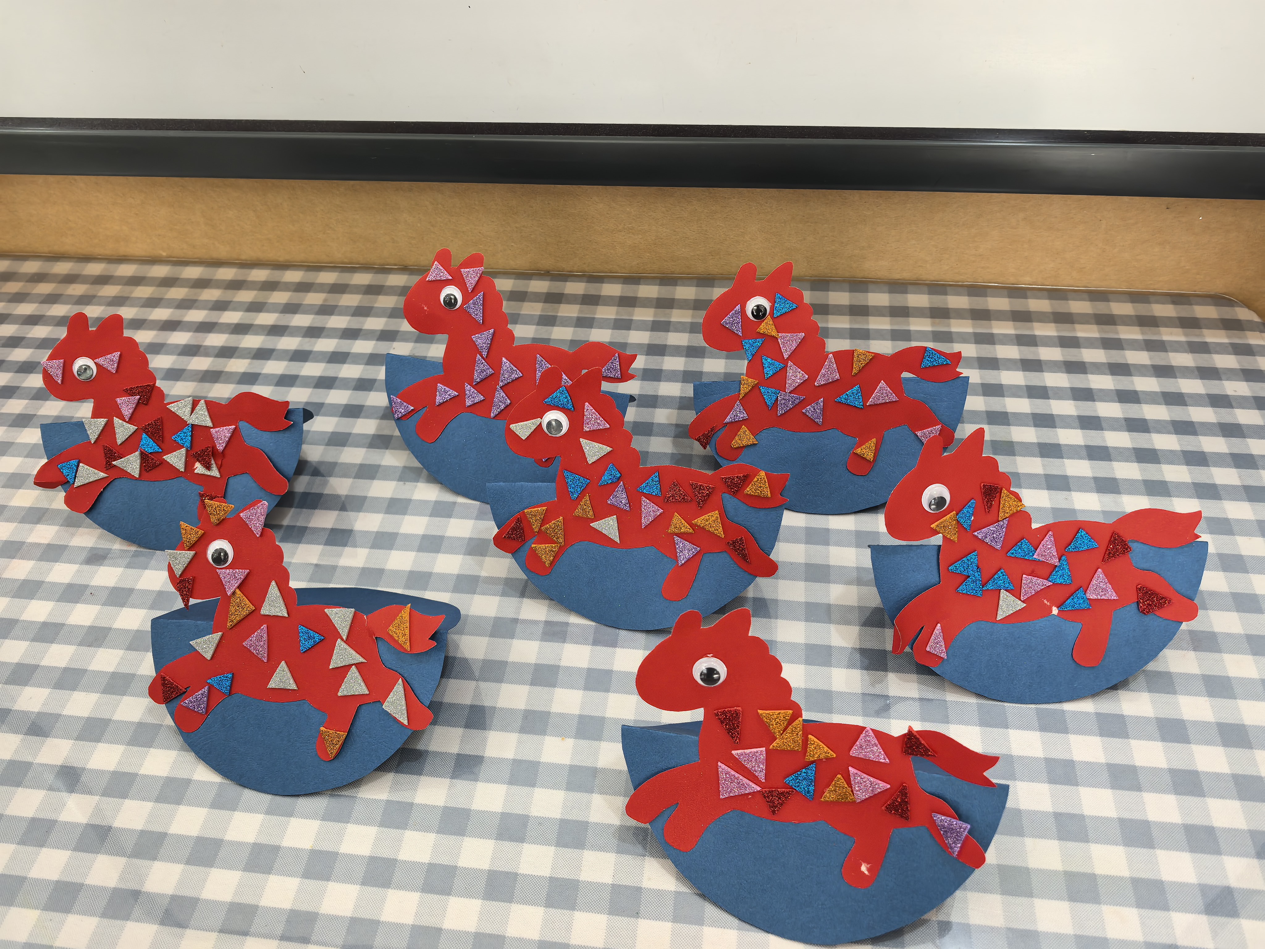 萌娃迎马年,巧做“红马”贺新春 在2026马年春节来临之际,兰亭中心幼儿园的教室里洋溢着浓浓的年味。一群可爱的萌娃们正围坐在桌前,专注地进行着手工创作。 他们用红色不织布剪出小马的轮廓,再贴上亮晶晶的彩色三角装饰,为小马“穿”上漂亮的花衣,最后把做好的红马固定在蓝色的“底座”上,一个个憨态可掬的摇摇小马就诞生了。 孩子们认真的小脸上满是喜悦,在动手创作的过程中,不仅锻炼了手部精细动作和创造力,更在欢声笑语中感受着传统生肖文化的魅力,用自己的方式迎接马年的到来。