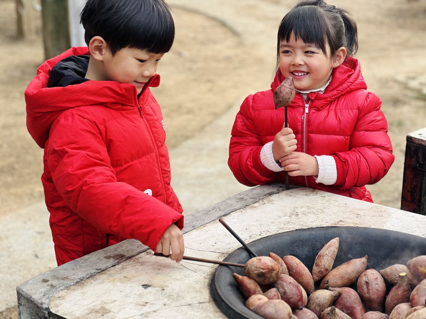 #冬日寻味# 幼儿园“暖冬三味”采收美食记 寒风虽至,柯桥区兰亭中心幼儿园内却暖意融融。近日,我园开展了一场别开生面的“暖冬三味”主题实践活动,孩子们在冬日暖阳下,亲手采收甘蔗、采摘橘子,体验传统烤番薯,用舌尖感受季节的流转与大地的慷慨馈赠。 一蔗一橘一薯香:来自土地的暖冬礼物 在园内的“四季小田园”里,冬日景象别有一番生机。孩子们学习辨认成熟的甘蔗,体验采收的力道与技巧。怀抱比自己还高的甘蔗,孩子们的脸上写满收获的骄傲。 转个弯,金灿灿的橘子林映入眼帘。孩子们穿梭在果树间,寻找那些“穿着最黄衣裳”的果实。“我找到一簇兄弟橘!”“闻起来好清香!”小手轻轻旋转果蒂,一颗颗饱满的橘子落入掌心,空气里弥漫着柑橘特有的清新香气。 最令人期待的是烤番薯环节。等待的过程里,甘蔗的清甜、橘子的芬芳与渐次飘出的薯香交织在一起,构成独特的冬日三重奏。 丰收的盛宴:三种甜蜜,一种温暖 剥开焦香的外皮,金黄的薯肉冒着热气;掰开新鲜的橘子,果瓣晶莹透亮;咀嚼清甜的甘蔗,汁水满口生津。孩子们小心翼翼地品尝着这三味冬日恩物,感受着不同质地、不同层次的甜蜜在口中交融。 从土地到餐桌:完整的冬日食育课 这场“暖冬三味”活动,不仅是一次美食体验,更是一堂生动的食育课程。当孩子们手捧自己收获的果实,品尝着亲手参与制作的美食,他们收获的不仅仅是味觉的享受,更是对自然循环的初步理解,对劳动价值的真切体会,对传统智慧的直观认知。 冬日虽寒,甜蜜常在。这个冬天,幼儿园里飘散着番薯的焦香、橘子的清新、甘蔗的清甜,更洋溢着孩子们发现、探索、收获的欢笑。三种滋味,一种温暖——这是大地给予的馈赠,也是童年最甜蜜的回忆~