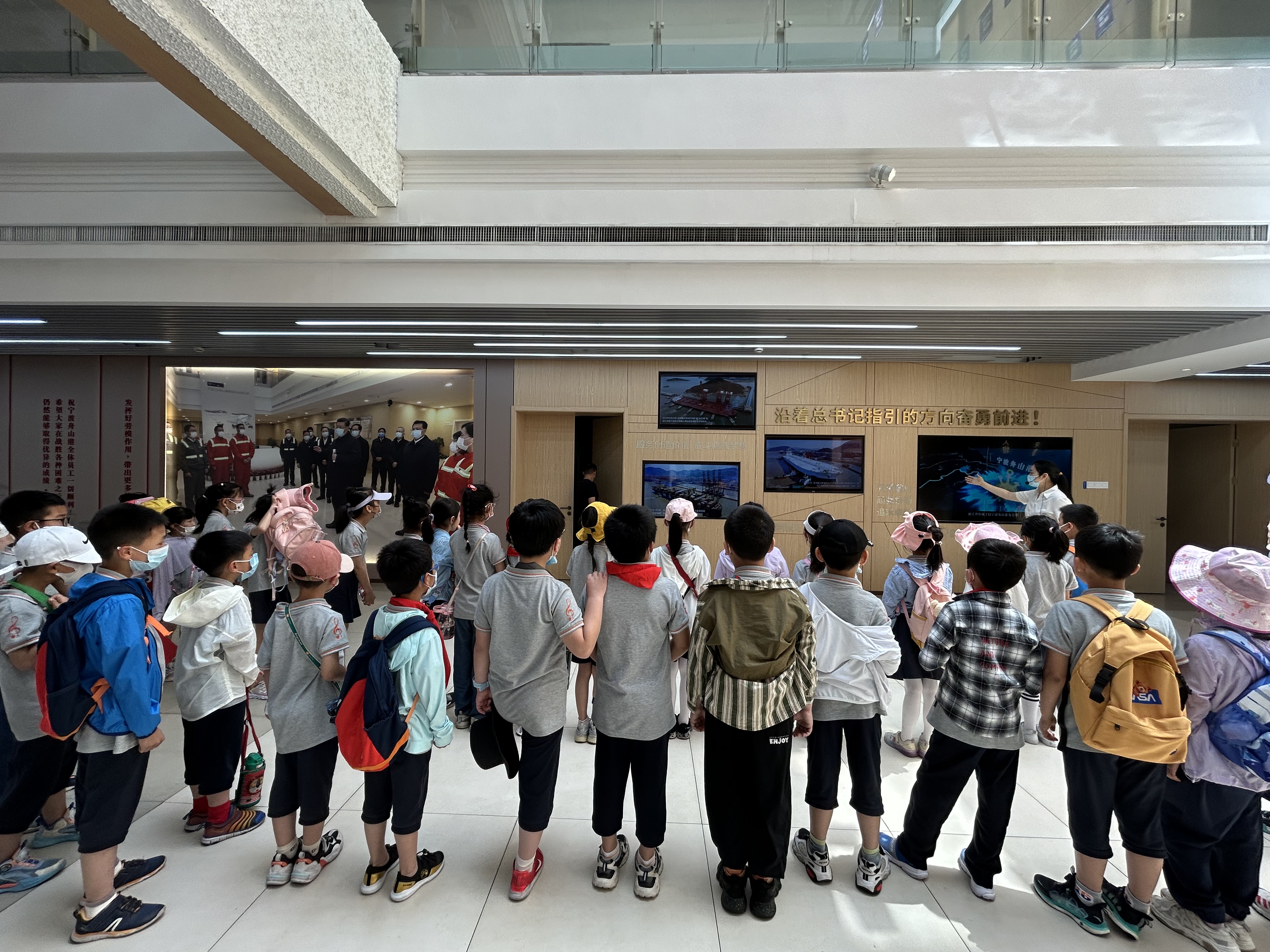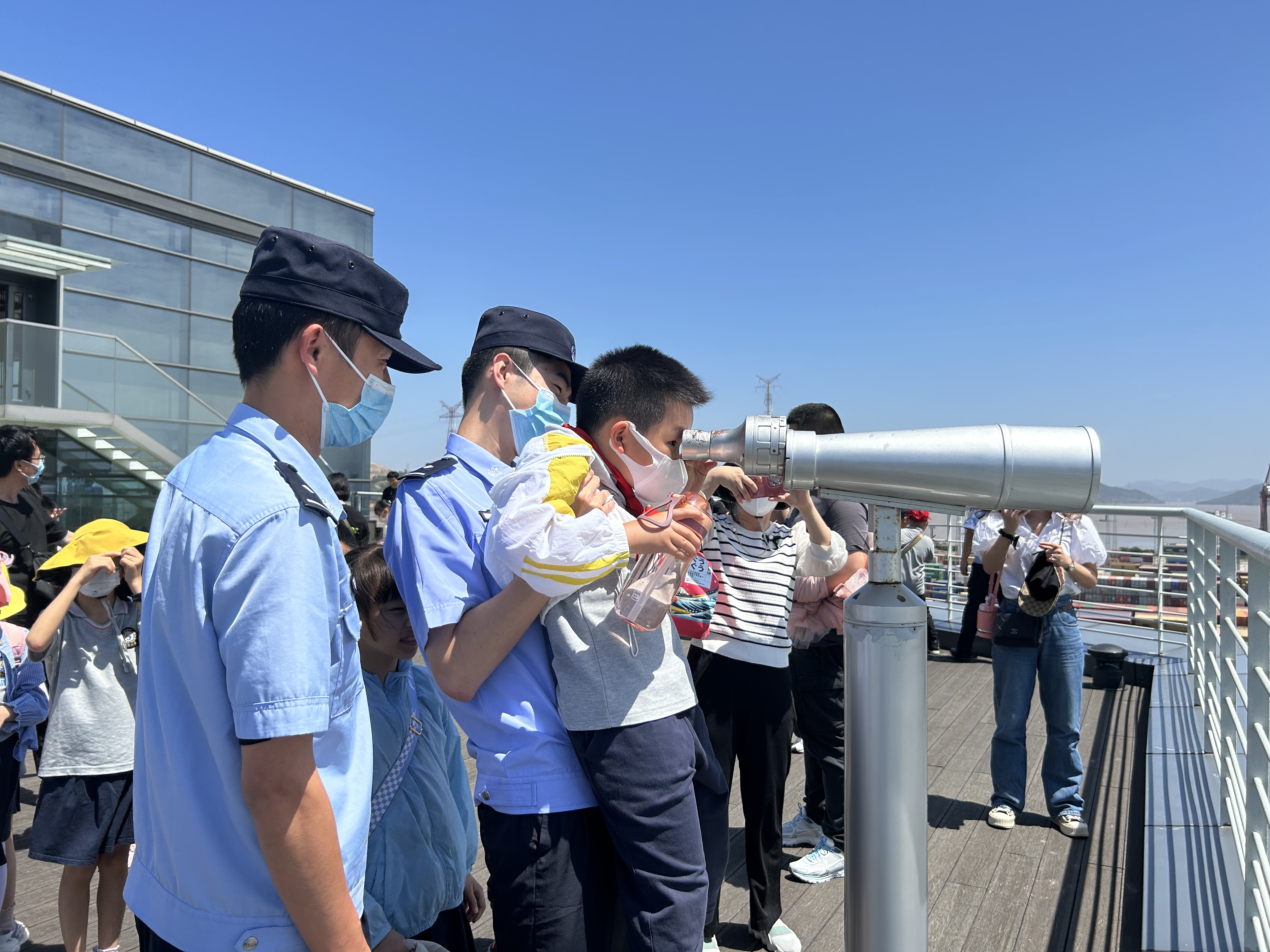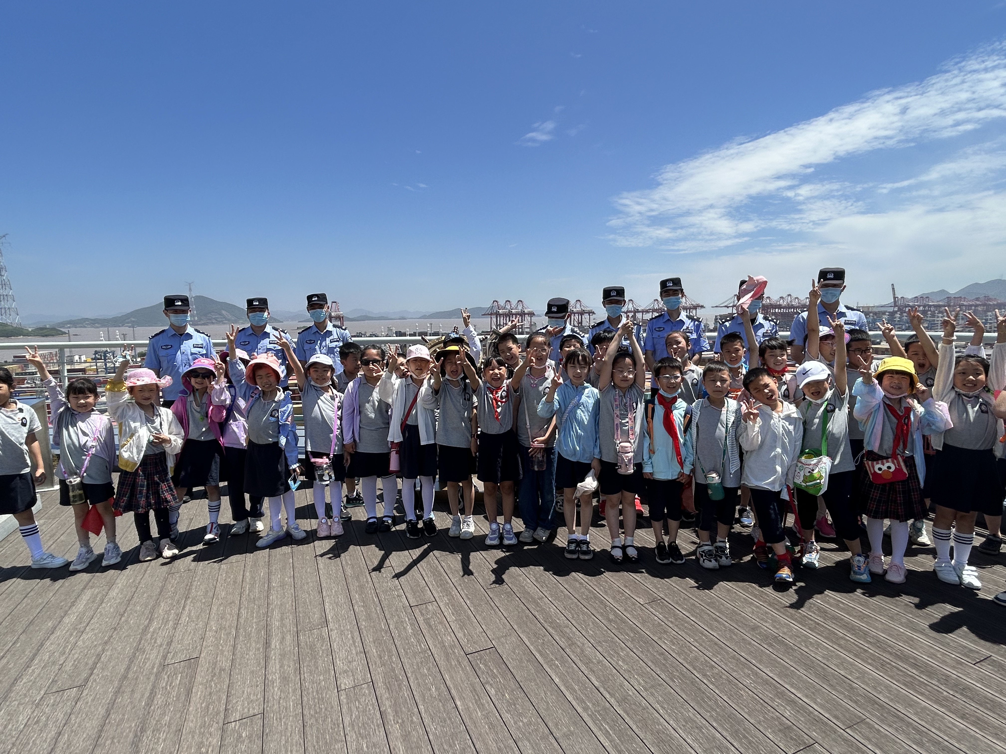 走进宁波边检 解锁六一节新体验 5月28日,宁波出入境边防检查站穿山边检机关开展“‘蓝’色六一·快乐‘童’行”警营开放日活动,来自邵成小学的36名小学生走进宁波边检,提前过了一个别样的六一儿童节。 “大家现在站着的五角星位置是习总书记曾经站过的地方……”活动现场,小朋友们沿着习总书记走过的路,参观宁波北仑第三集装箱有限公司一楼接见区、十二楼参观区及相关展厅,登上观景平台,俯瞰港区全貌,回顾总书记三次考察穿山港区的历程,重温总书记“硬核”嘱托,近距离领略穿山大港文化。 在边检民警的带领下,大家来到穿山港区1号泊位,参观码头现场集装箱作业场景,近距离接触了民警们的工作环境和工作情况,切身感受了边检职业氛围。边检民警薛兴源向小朋友们解说穿山港区发展历程:“小朋友们,穿山港区是世界第一大港宁波舟山港的核心港区……希望我们的宁波舟山港越来越强大,也希望你们能好好学习天天向上,争做社会主义的接班人!”。随后,边检民警与小朋友们还一同开展“我与大港合个影”合影留念活动,留下了与世界第一大港的合影。 “冲啊,还差最后一步就连成一线啦!”活动现场传来小朋友们欢呼的声音,边检民警和小朋友们正在进行极速三子棋趣味活动,喝彩声、欢笑声洒满了整个大厅,让民警和孩子们度过了一个共同娱乐、共同休闲的时光。 “这次活动真是太有意义了,让孩子们有了一次与众不同的体验,感受到了东方大港的魅力,也零距离感受到别样的警营生活。”邵成小学周莹老师如是说。
