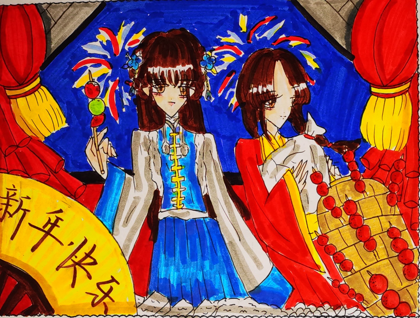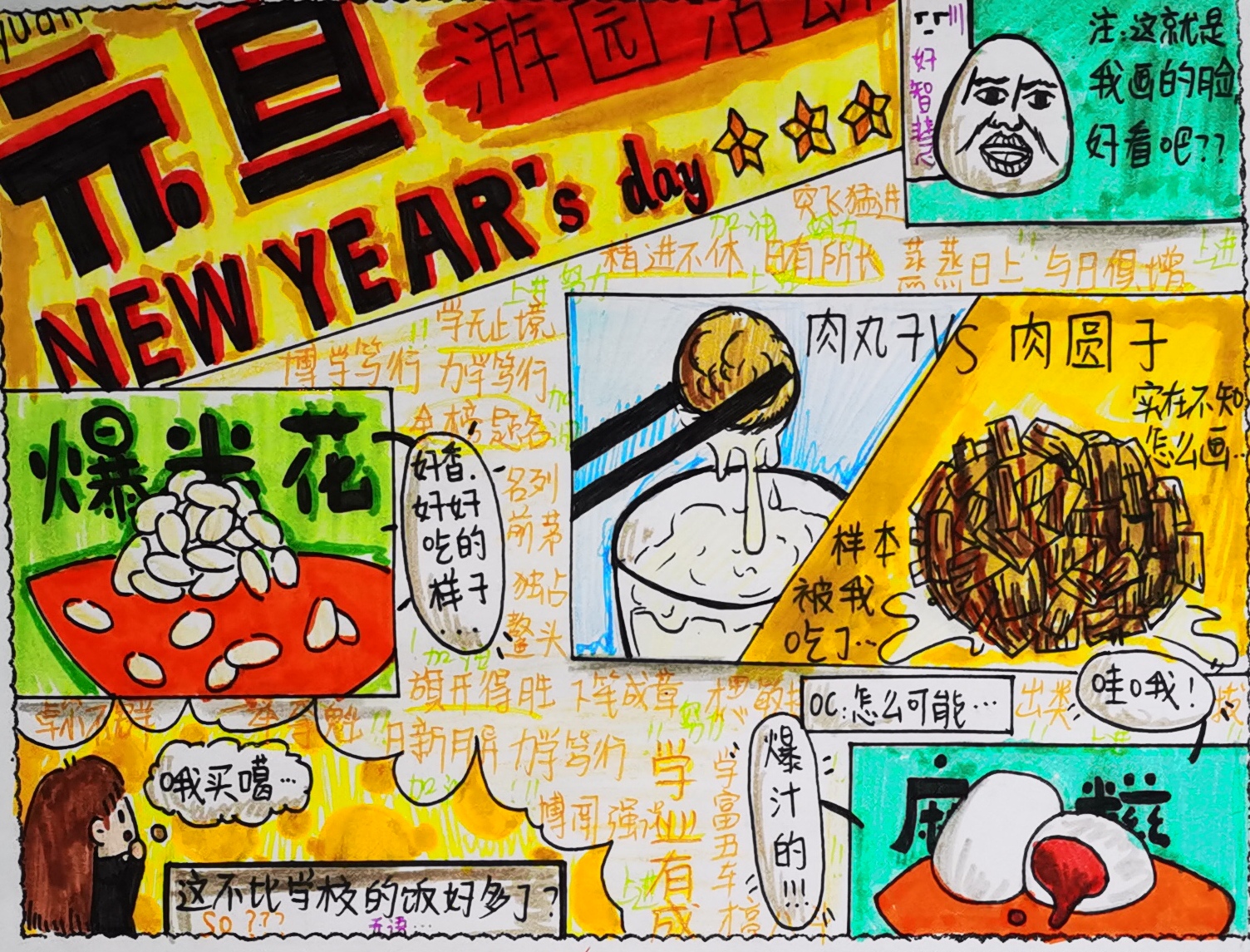迎新年游园记 建德市明镜小学603班 程蔓汐 指导老师 张晓玲 新年的钟声还没敲响,我们的校园已经被各种各样的小店铺和活动用的道具装点成了欢乐的海洋。一年一度的迎新年游园活动热闹开场,我拽着好友,像刚出笼的小鸟,一头扎进了人潮里。 游园的规矩很简单:每人初始有5个印章,玩游戏集章,章越多,能兑换的美食就越丰盛。我们的首战目标,是操场角落那个被围得水泄不通的“涂鸦脸”游戏摊位。两张长长的纸从地那头铺到这头,上面画满了同学们的“杰作”——有的脸是可爱的小姑娘,有的脸方形,长着三根冲天辫,还有的直接添上了小动物的耳朵…… “我也来添几笔!”我摩拳擦掌,抢过黑色马克笔,二话不说就在一个空白轮廓的脸上画了一个由“答”化简成的惊吓表情包。“你这个……麦麦汐(我的外号)好手法……”在一旁看着我画脸的好友指着我画的脸,笑得差点儿没了气,直不起腰。事后我们跑去盖章处,盖了第一个赚的章。 跟她分开后,我撒开腿,直奔足球场的射门游戏区。为了盖章,为了我的脸面,今天我可是憋足了劲儿想露一手。摆球,助跑,射门!本来我还准备好接受球没射进,被人笑话的结果了,但今天我似乎被上天眷顾,“咚”的一下,球竟然就进了!我下巴惊掉在地,裁判笑着拍打我的肩膀,顺手给我盖了个章,打趣说:“哟!小姑娘,球踢得不错哟!” 之后几个游戏,我玩得都异常轻松,童年标配的跳房子,两腿一蹬,轻松过关;投壶,手持箭轻轻向壶中一投,成功得章…… 我看着手中已经盖满的集章卡,心想:游戏玩得差不多,该拿点东西填填肚子了!胃也好似在回应我的想法,“咕咕咕”叫了起来。寻着香味,我挤进了美食区。这里简直是吃货的天堂!洁白的麻糍软糯弹牙,加上甜甜的红豆馅儿,简直绝配;甜而不腻、酥脆可口的桃花酥香得人直流口水;还有热气腾腾的肉丸子,美味的爆米花,每一样都让人挪不开脚啊! 我用赚到的印章兑换了三大袋子美食,别说别人了,连我自己的眼睛里都冒着星星!我走向教室,手里抓着食物,一个劲儿往嘴里塞,听着校园里的欢声笑语,心里暖洋洋的。 这个迎新年游园活动,可真是好吃又好玩,让人回味无穷!