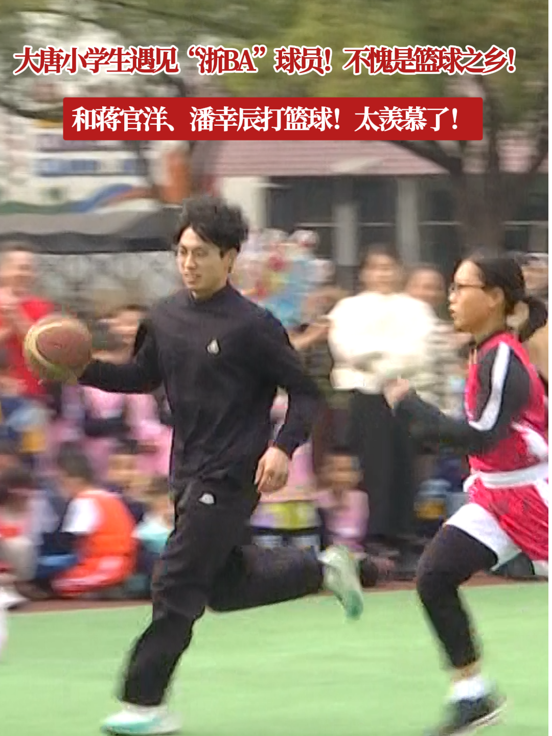 11月24日下午,“浙BA”诸暨队蒋官洋、潘幸辰、陆军杰、朱烨挺4名球员走进盛唐小学开展校园篮球活动。