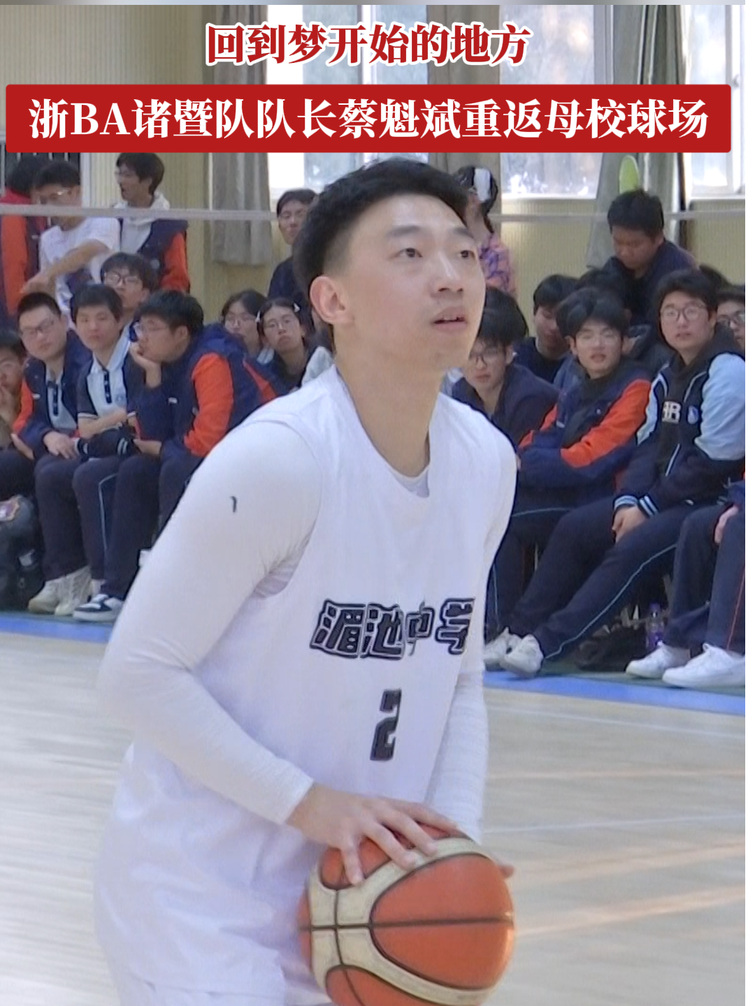 近日,现任“浙BA”诸暨队队长蔡魁斌带领活跃在浙BA、村BA赛场上的湄中校友们,组成校友队,与湄池中学师生展开了一场友谊赛。