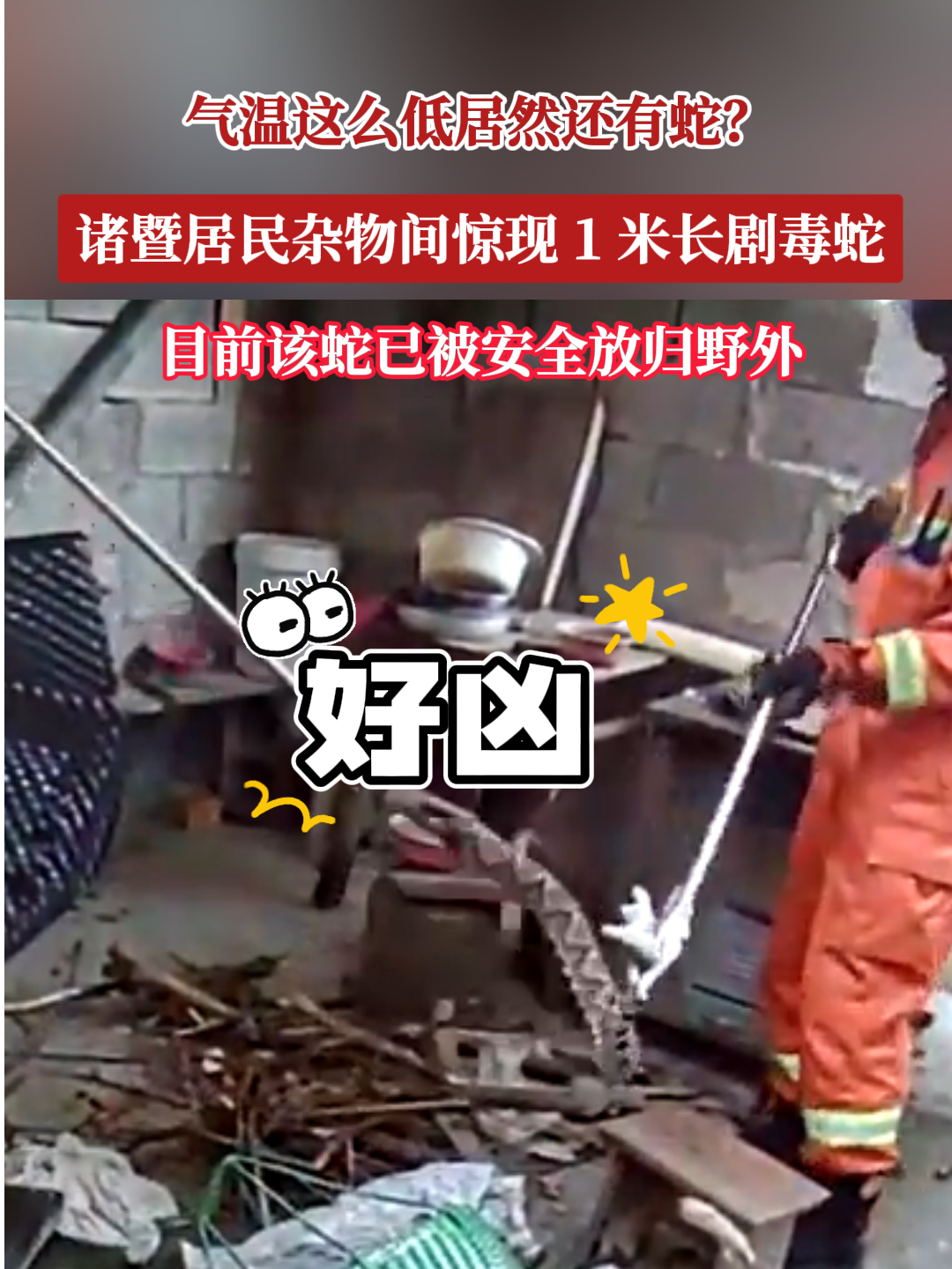 近日,诸暨暨南街道群众报警称家中发现大蛇,民警联合消防救援大队5分钟不到将蛇成功“逮捕”,目前该蛇已被安全放归野外。