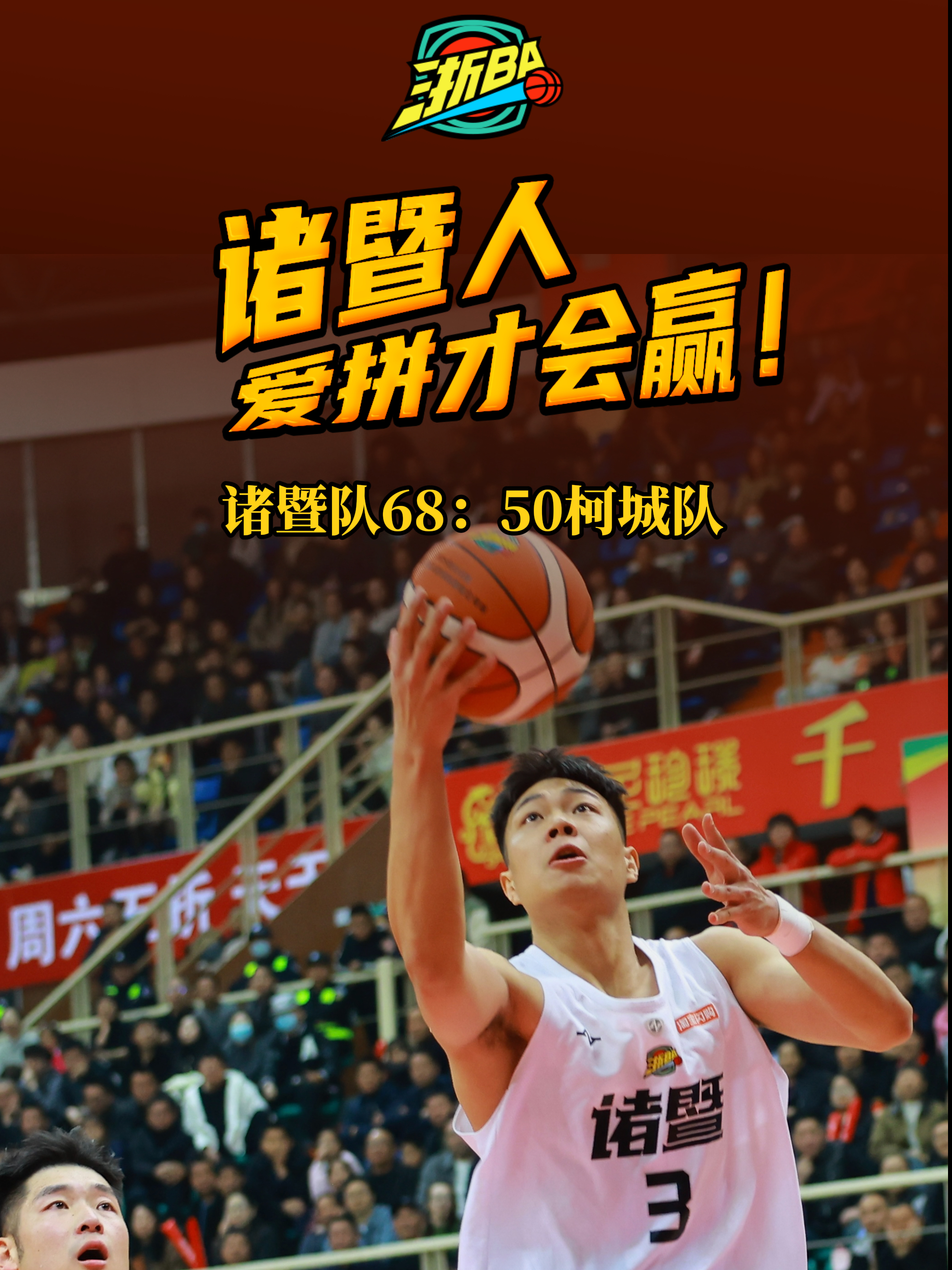 11月29日,“浙BA”城市争霸赛,诸暨队一改往日的“慢热”,开局积极进攻接连得分,与柯城队拉开比分差距,最终在分秒必拼的势头下,以68:50的比分主场战胜柯城队!每一个篮板,每一次抢断,每一记攻防,都为家乡而拼搏!这场胜利,献给每一位敢闯敢拼的诸暨人!