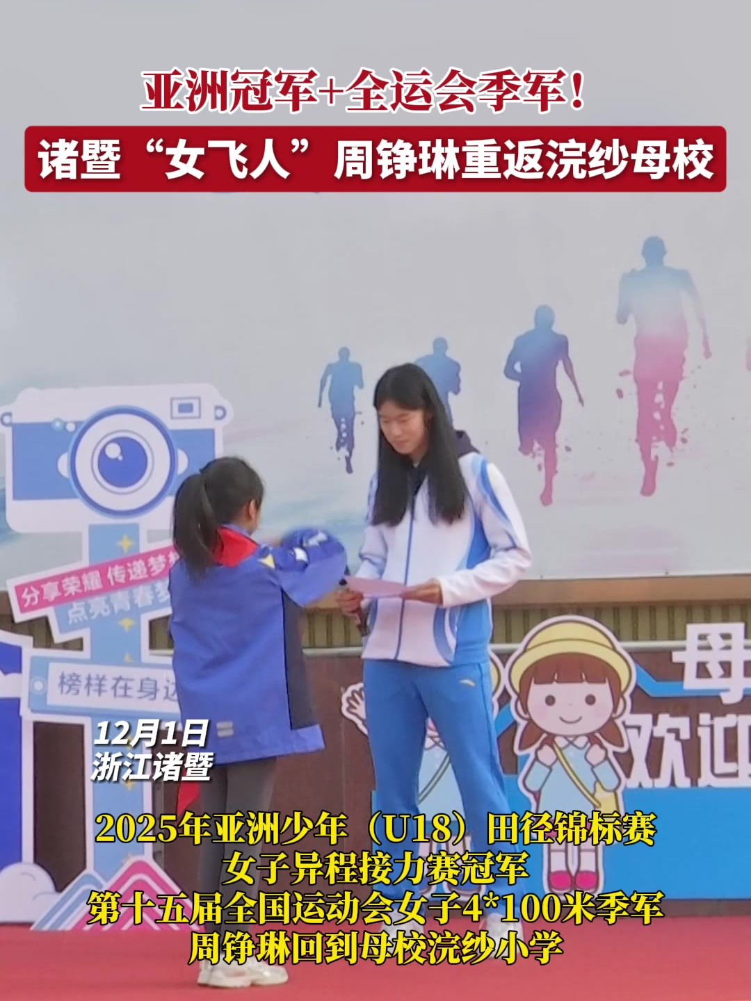 亚洲冠军+全运会季军!诸暨“女飞人”周铮琳重返浣纱母校。