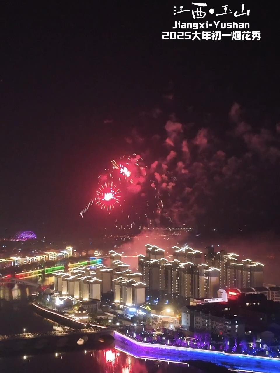 江西玉山在大年初一举行盛大的烟花秀,在场观众数万人