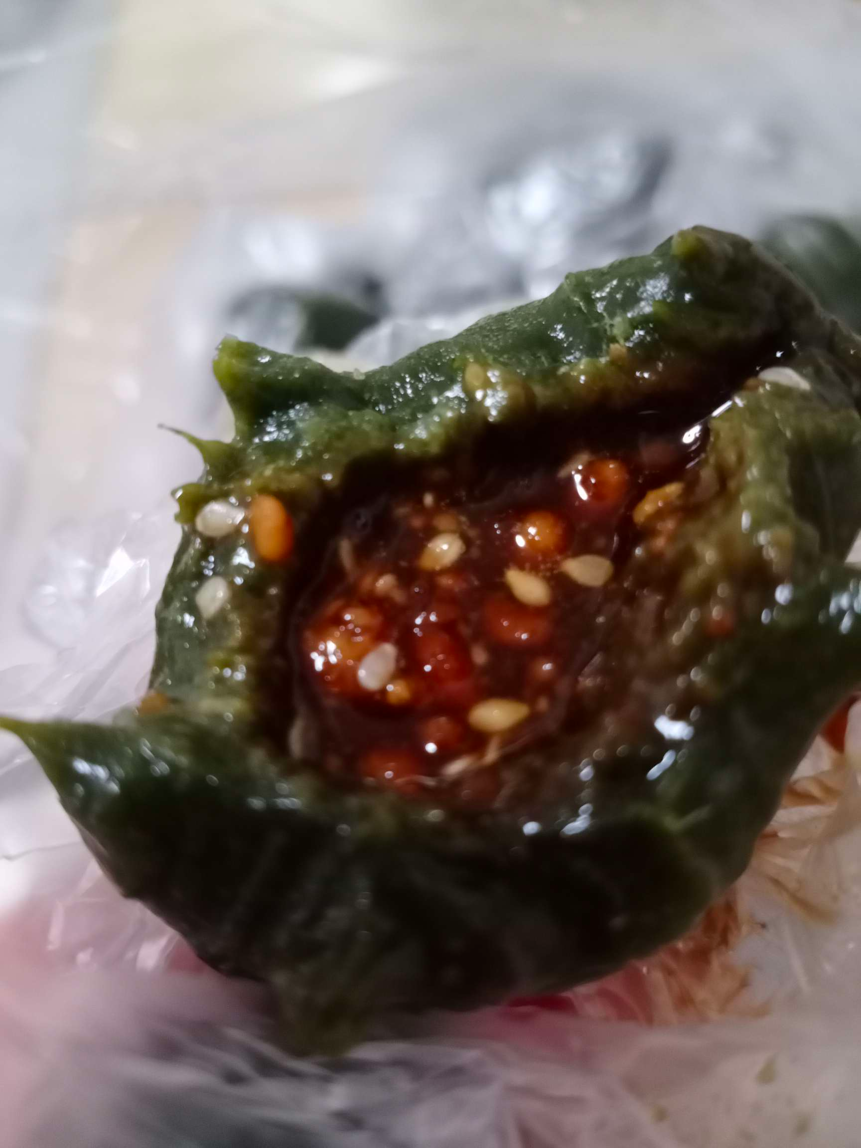 自己做的青团,特别有嚼劲。 甜馅:用炒熟的花生去衣再弄碎、和芝麻,蔗糖、自己熬制的猪油一起搅拌好包的青团。咬一口,青团绵糯香甜,刚吃过晚饭的我,又吃了两个,太久没吃这口甜甜的青团了,超好吃。