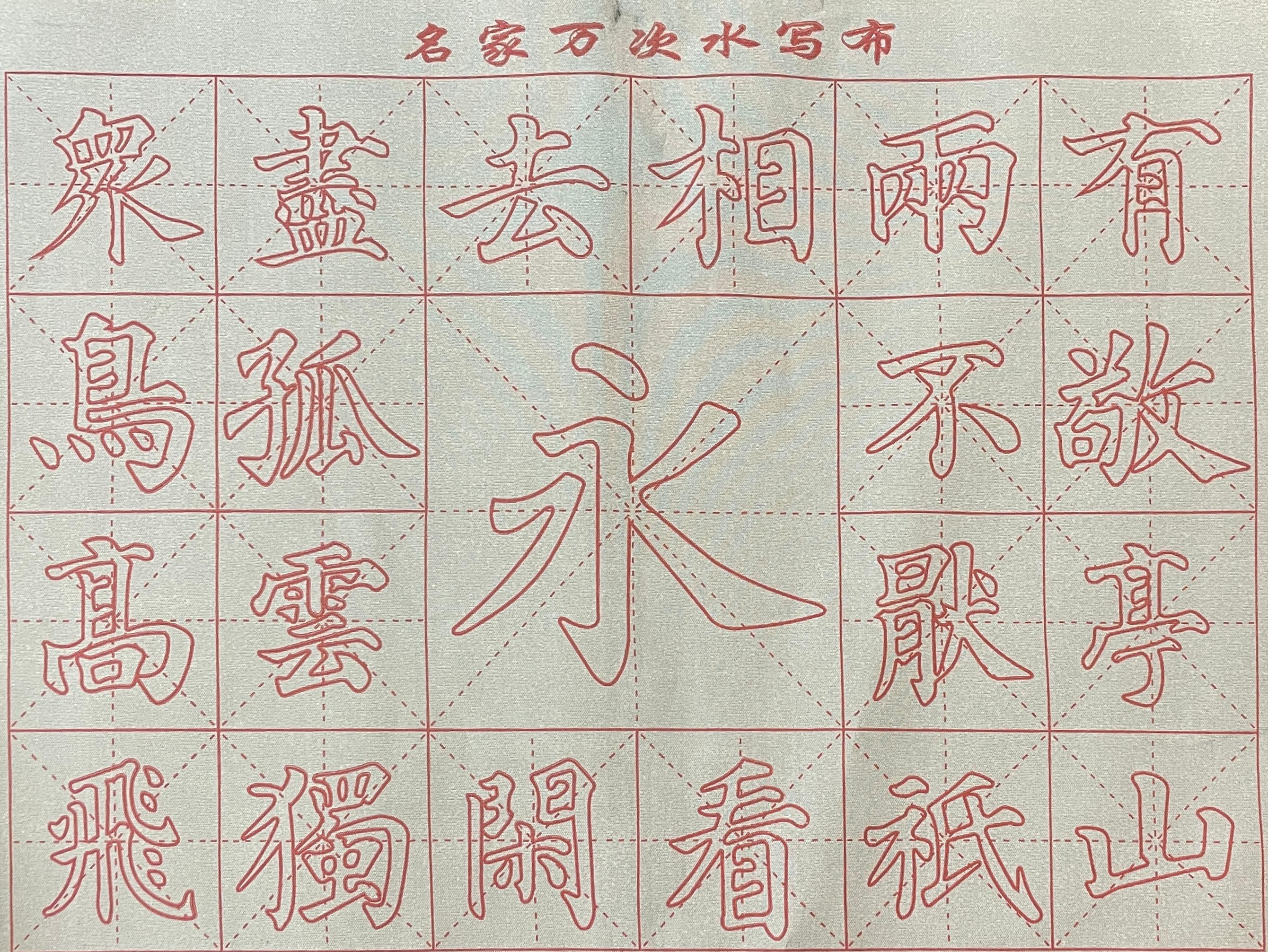 请问这个水写布上的字,你怎么读?