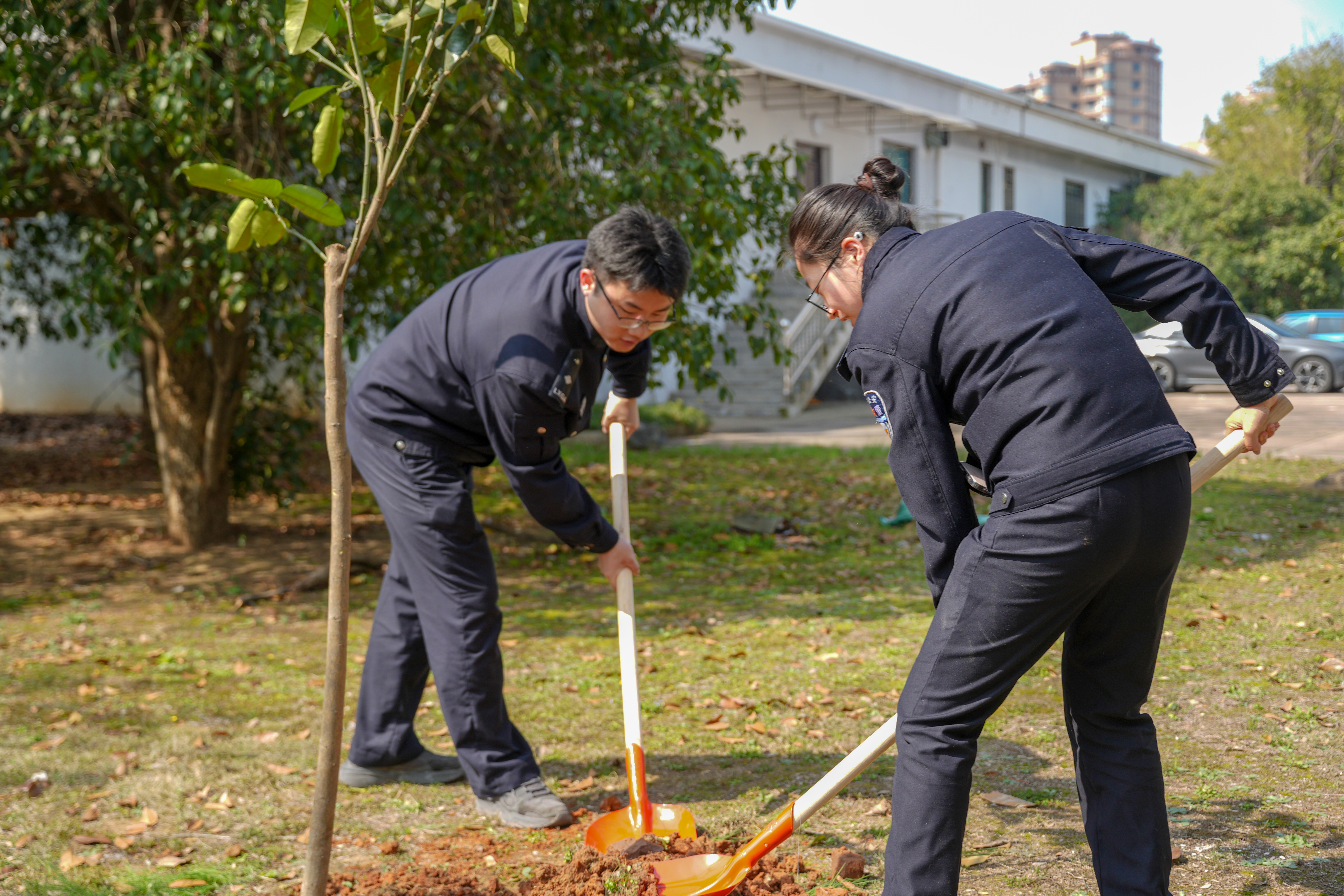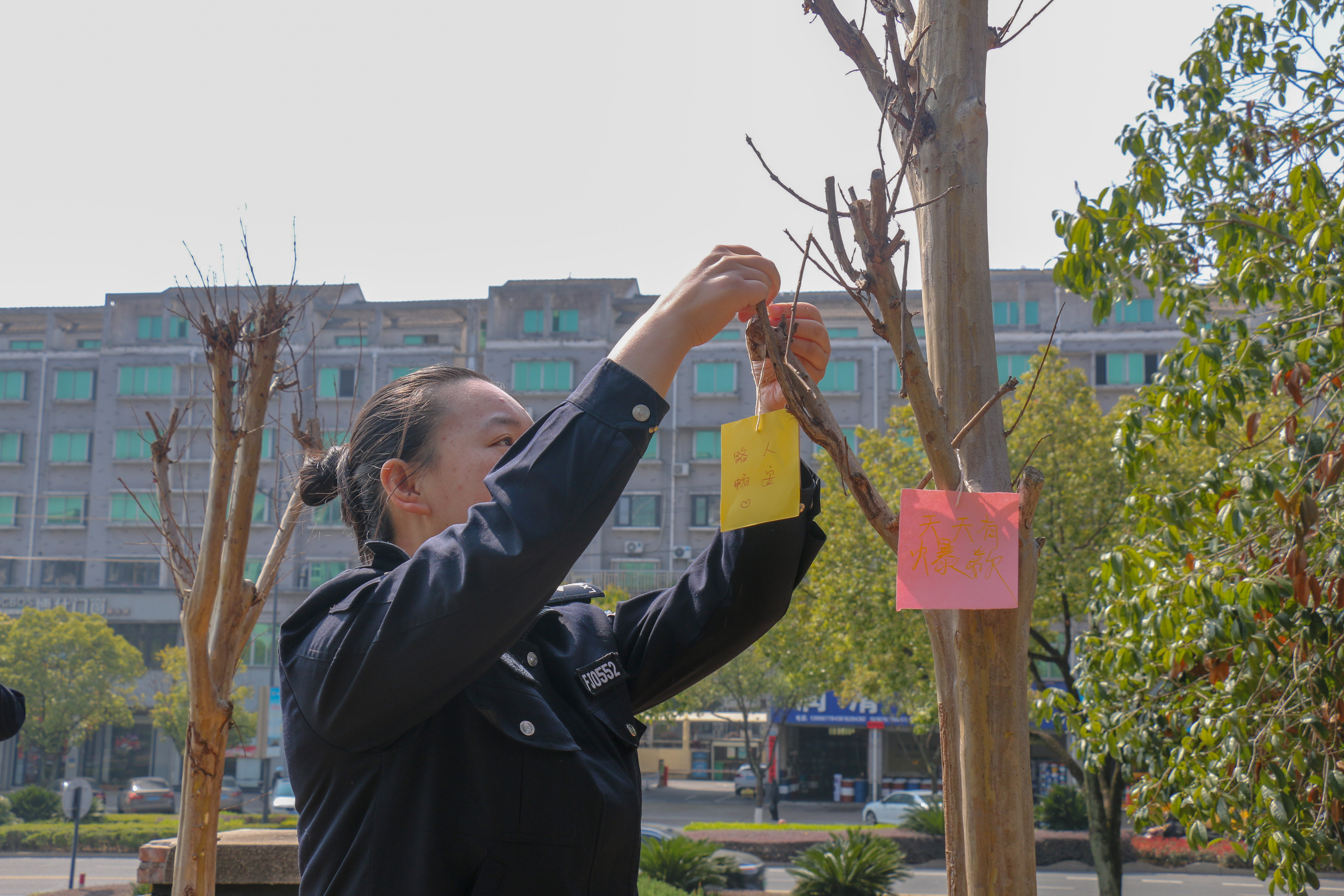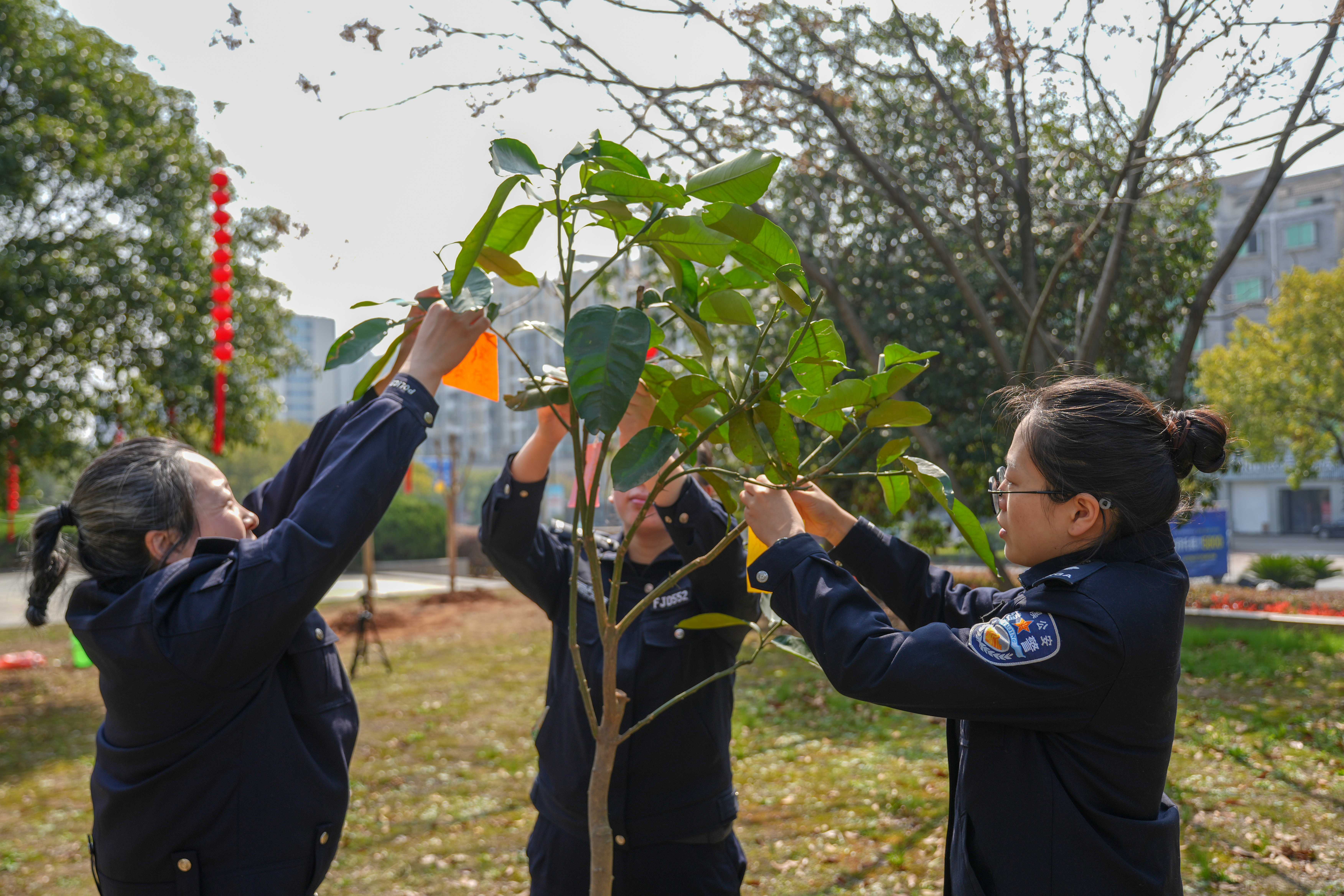 【春日植新绿 交警护平安】3月10日上午,兰溪市公安局交通管理大队在忠诚小院开展主题植树活动,民警辅警齐上阵,挥锹培土、扶苗浇水,分工协作、配合默契,合力栽下一株株紫薇、柚子树苗。大家还将平安出行的心愿写在许愿卡上,挂上新枝,让心愿与新绿一同生长。栽种的绿植,巧妙融入交通安全寓意,“柚”与“佑”同音,柚子树承载着护佑群众平安出行的美好愿景;紫薇花期绵长,象征交通安全宣传久久为功,让文明出行理念一路生花。此次活动,兰溪交警以植绿践初心,将平安使命根植于心,全力守护群众出行平安路。(董剑浩)
