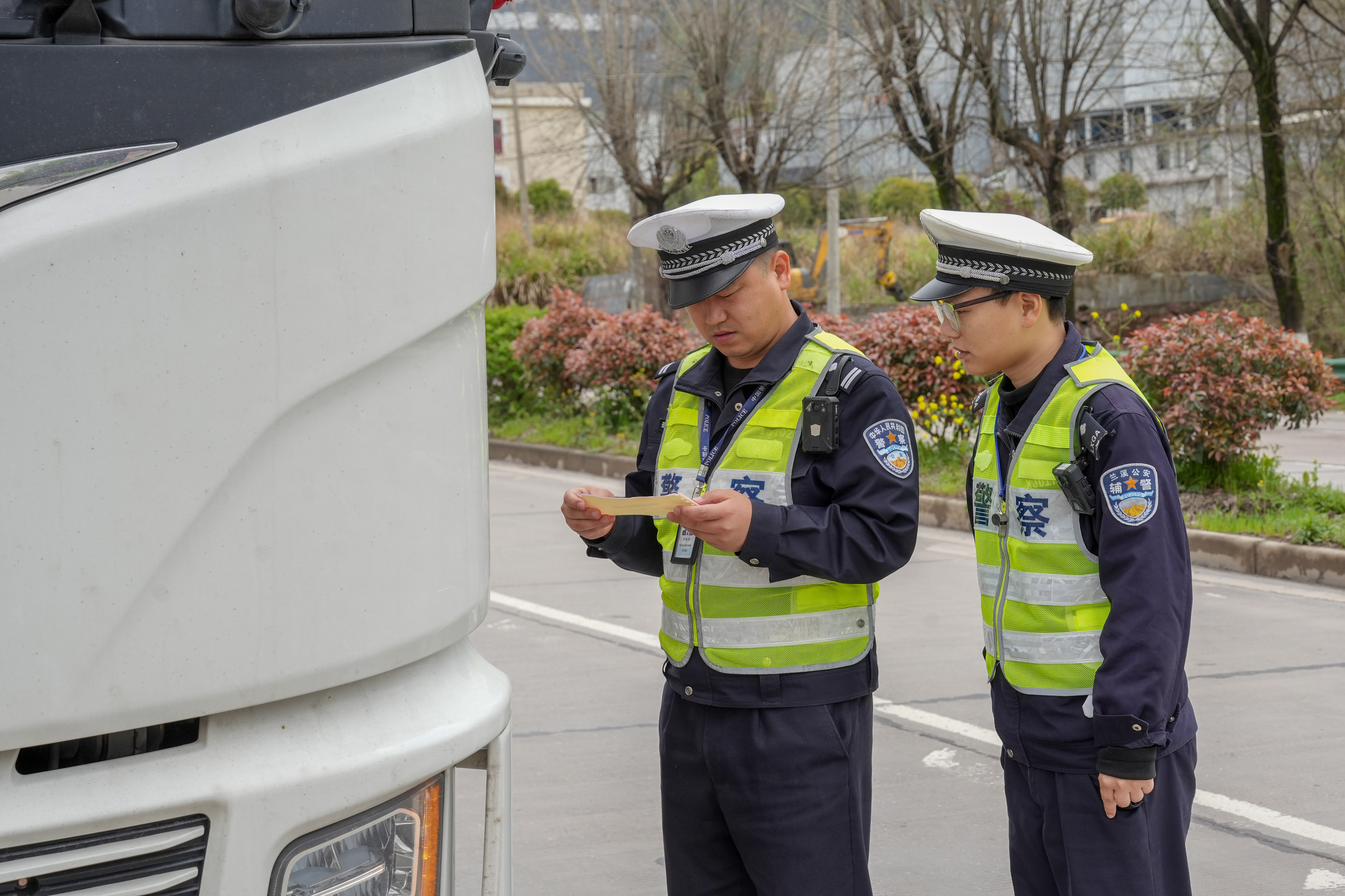【春季行动,守护平安】连日来,兰溪市公安局交通管理大队紧扣春季道路交通整治行动重点,构建“定点查控+流动巡查+源头管控”三位一体工作机制,深入开展货车“清雷” 专项整治行动。4月1日上午,民辅警紧盯330国道、351国道等重点路段及货车通行高峰时段,聚焦货车超载超限、疲劳驾驶、闯红灯等突出违法行为,实行错时勤务、联勤联动执法模式,全时段织密管控网络,持续保持严管高压态势,全力保障辖区春季道路交通安全形势持续平稳有序。