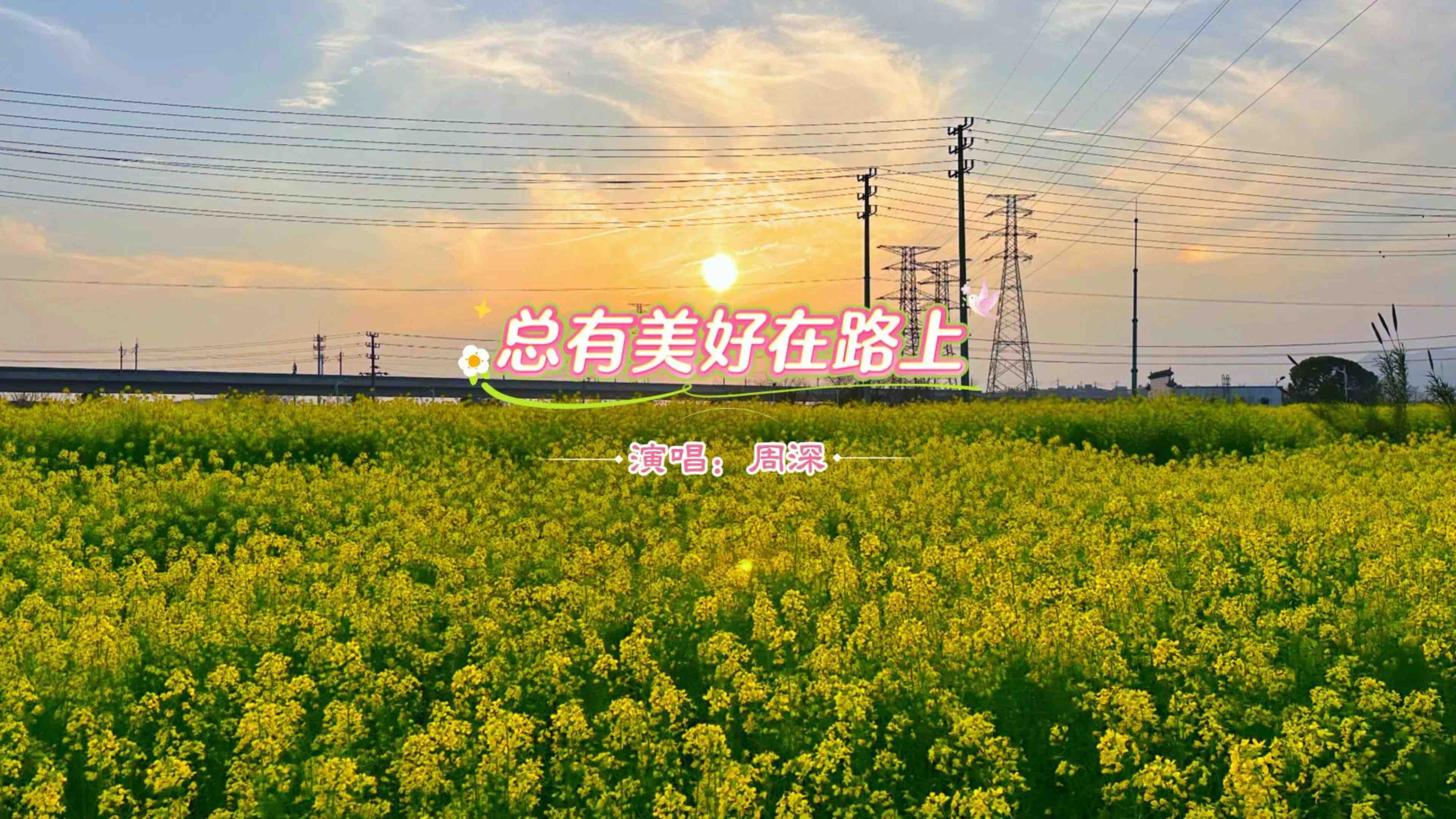 【油菜花开:总有美好在路上】这是油菜花盛开的季节,家乡村前村后满目油菜花正寂然盛开。那黄灿灿的花朵在阳光下摇曳如风铃,高铁从远处驶过,仿佛驶向充满希望的春天。看着这一幅美丽的风景画,不由得哼起周深演唱的那首歌《总有美好在路上》:花在开,云在飘,笑容在脸上。亲爱的你,好好地享受每段时光,爱与希望在生活里回响。