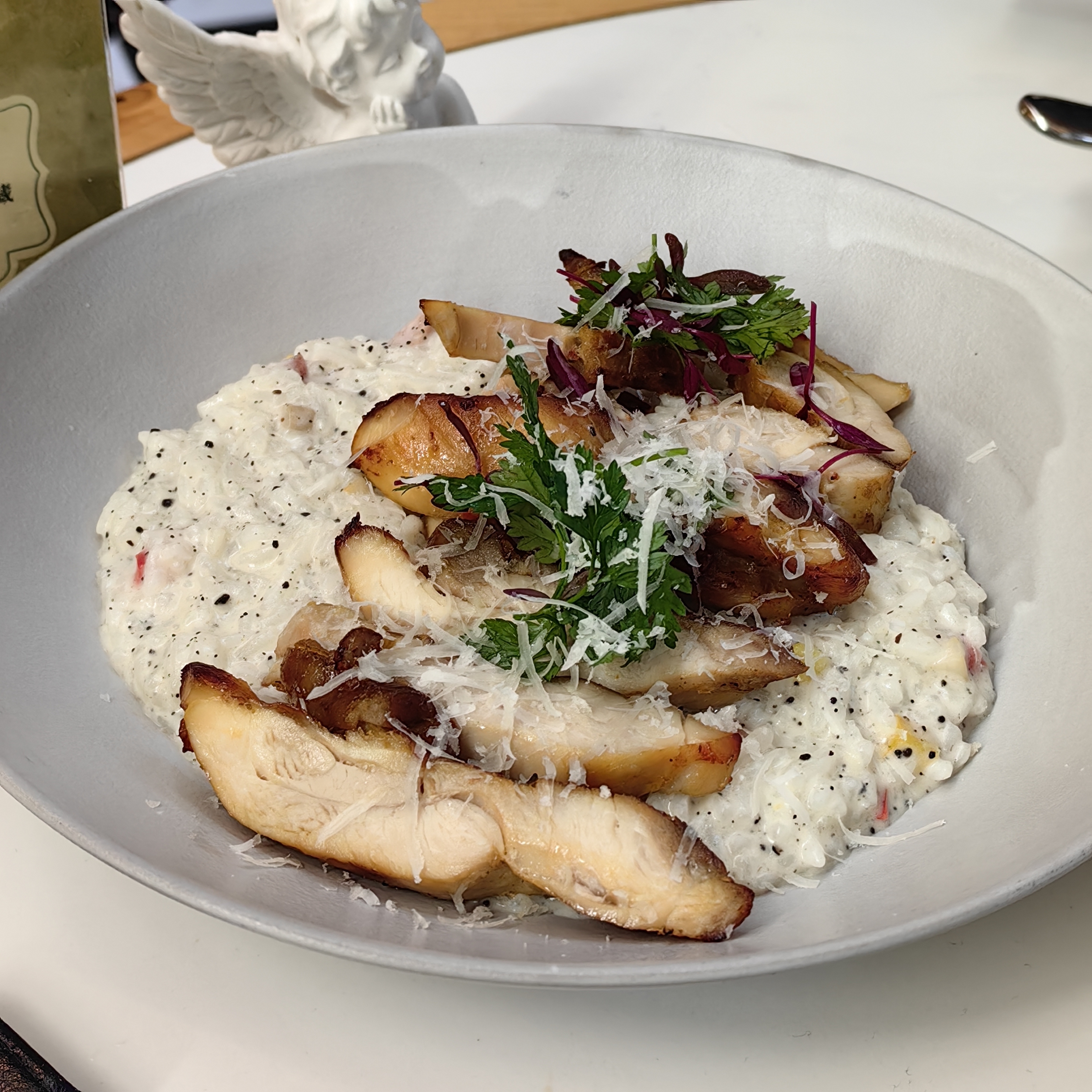 这一年请手机吃了黑松露鸡肉烩饭,黑松露的独特菌香带着坚果般的馥郁,与米香、肉香交融,咸鲜回甘,每一口都温润醇厚,余味悠长