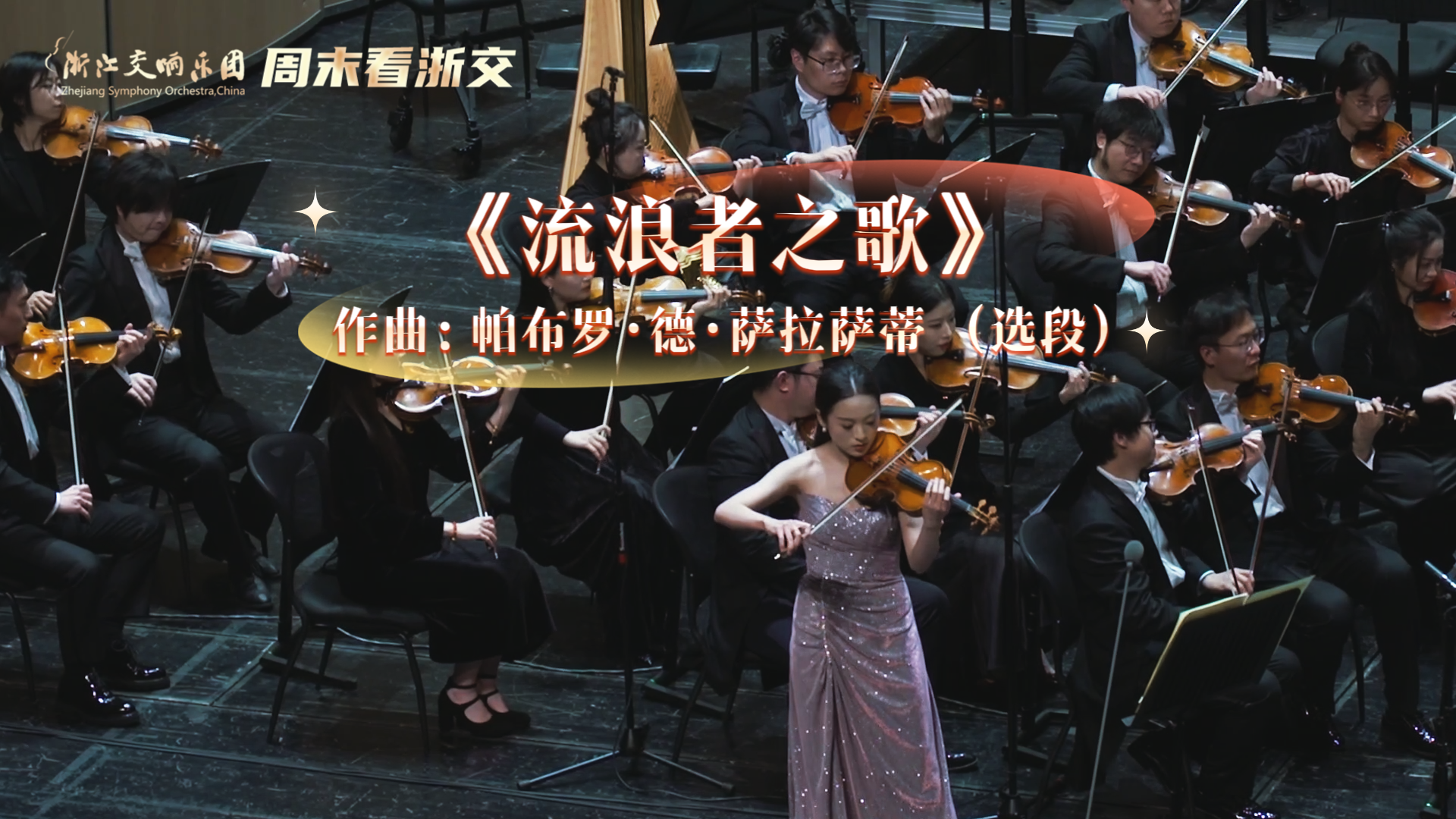 周末看什么?#周末看浙交 在浙江交响乐团“一城霓虹庆佳节”元宵节音乐会上,在张艺总监执棒下,浙交与乐团副首席、青年演奏家朱意涵演奏小提琴名曲《流浪者之歌》。乐曲伊始,乐队强有力地奏响深沉悲怆的主题,小提琴奏出仿佛能摧人心肝的悲伤旋律,瞬间将听众带入吉普赛人那充满苦难与宿命感的叹息中(视频为选段)
