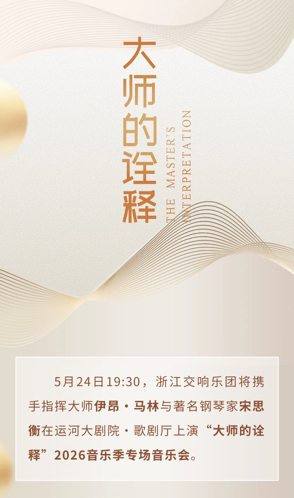 【预告】浙交×指挥大师伊昂·马林×蜚声国际的钢琴家宋思衡同台!5月24日,“大师的诠释”音乐季音乐会重磅来袭