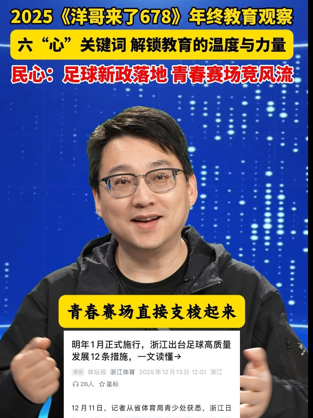 2025《洋哥来了678》年终教育观察: 六“心”关键词,解锁教育的温度与力量④民心:足球新政落地,青春赛场竞风流。