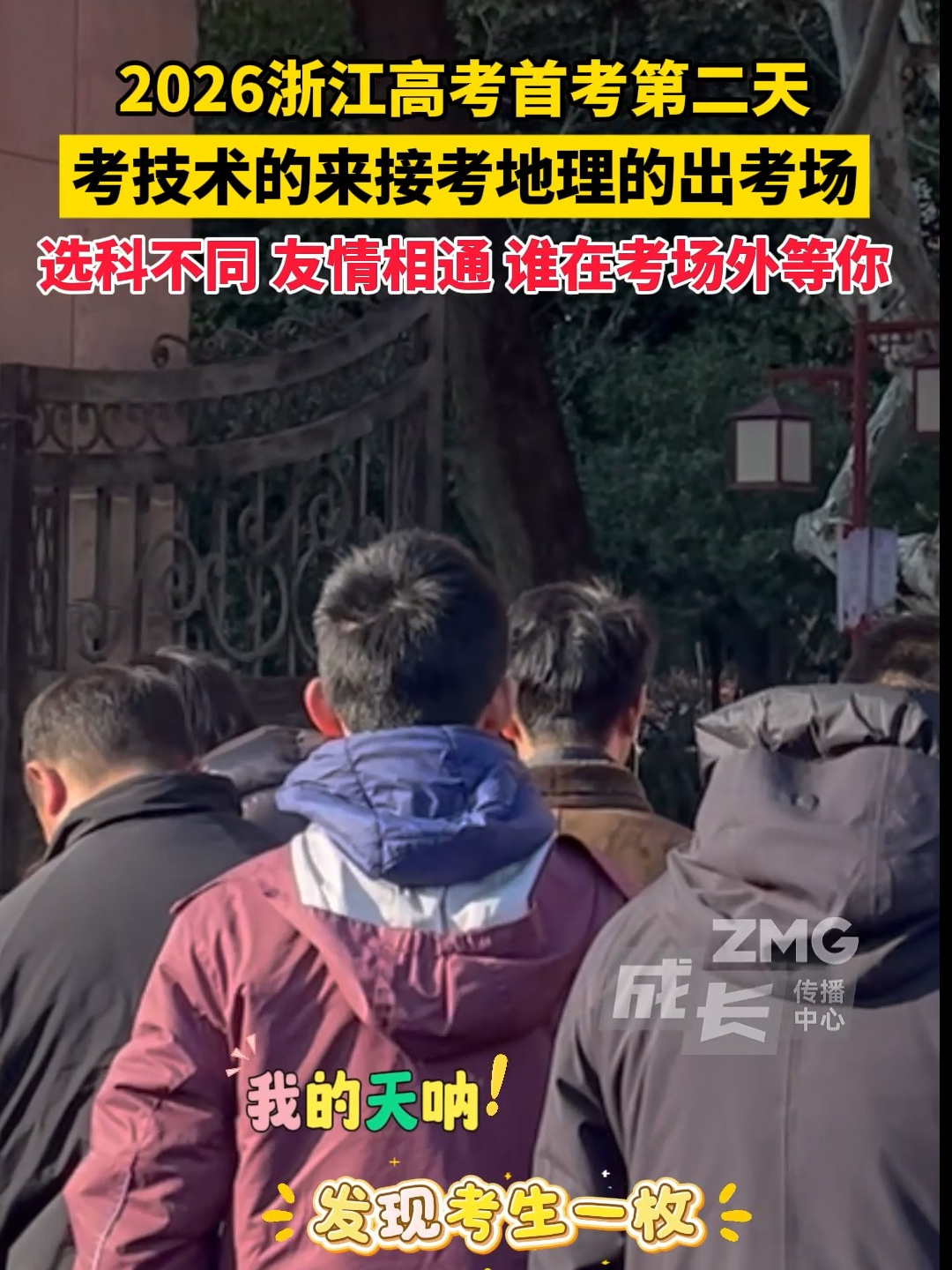 2026浙江高考首考第二天,考技术的来接考地理的出考场。选科不同,友情相通。 谁在考场外等你?