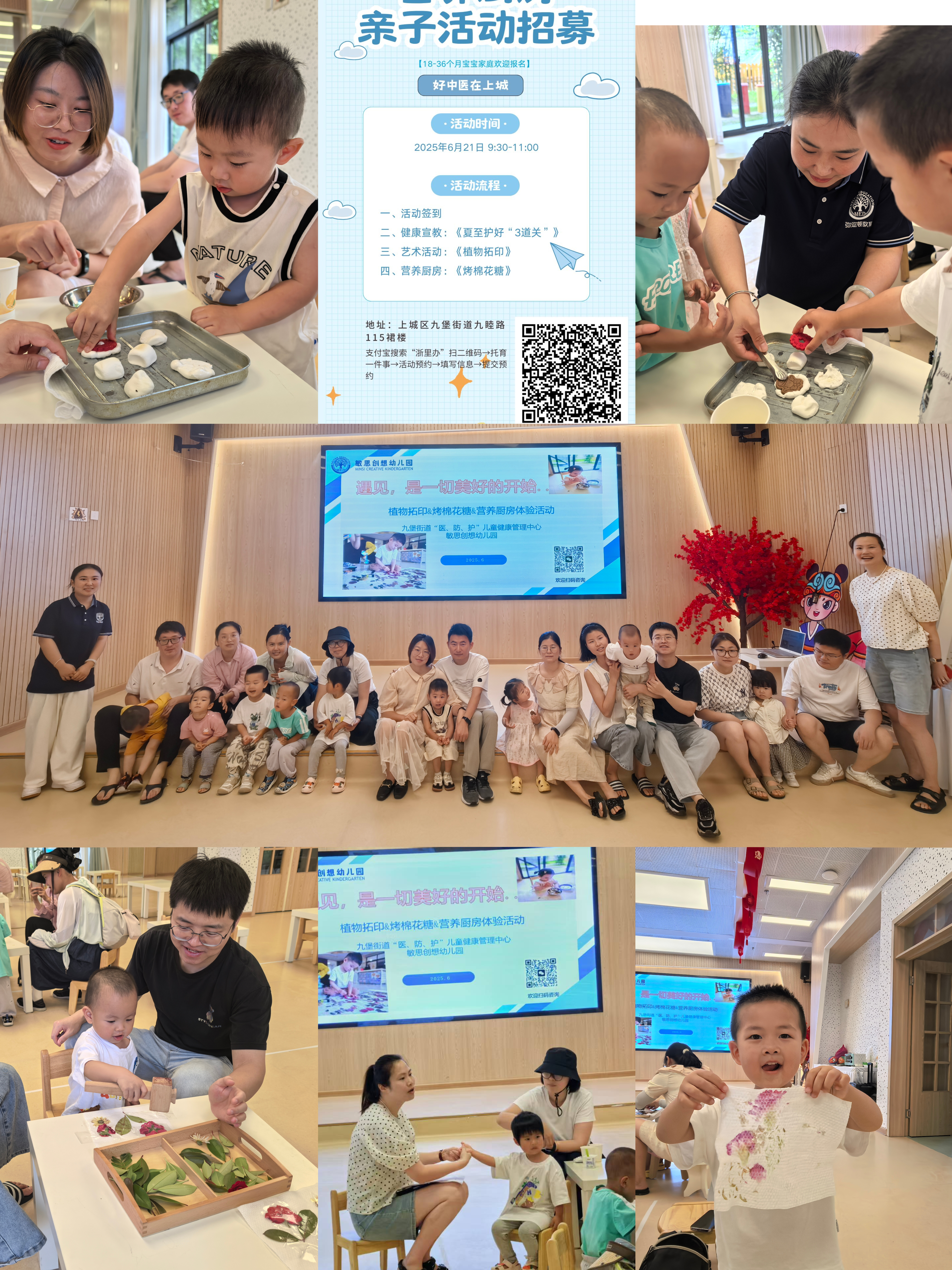 【医防护儿童健康管理中心营养厨房第19期(总第79期)活动】营养厨房活动如期而至,共来了9组家庭。首先是儿保医护带来健康科普《夏至护好“3道关”》,从饮食,日常养育,小儿推拿按摩三方面进行科普;其次是动手环节,孩子们用木槌咚咚咚唤醒沉睡的树叶,制作拓印画感受大自然的颜色。最后孩子们制作《烤棉花糖》一款简单手工小零食,自己动手自己品尝,趣味实践,守护宝贝每一步!