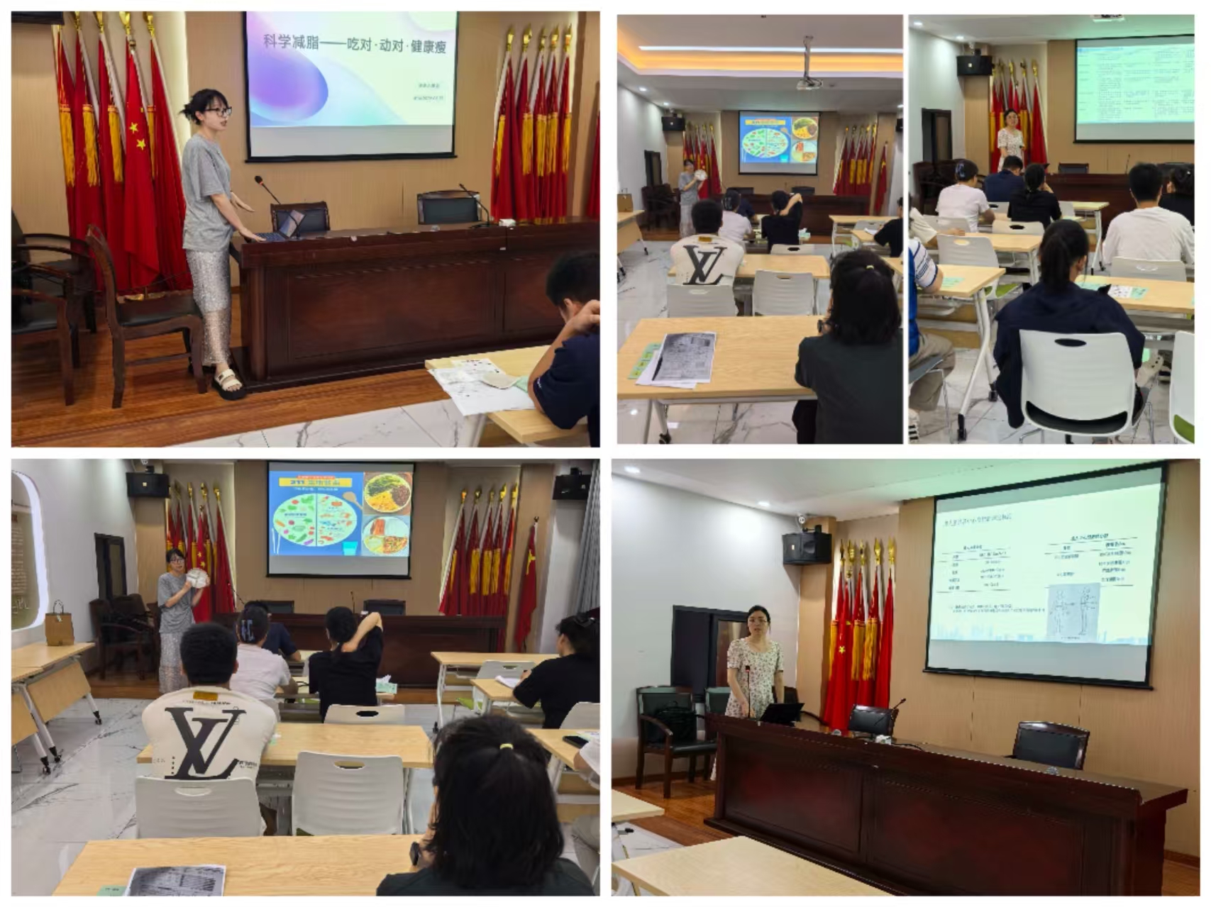 #红苹果社区《体重管理班》成功开班 在九卫中心及红苹果社区领导支持下,红苹果社区《体重管理班》昨日成功开班。该项目由中心谢波副主任统筹,首创“九卫中心+社区居委会”共管模式。 开班亮点: 1. 专业指导:中心杨金珠医师讲解了肥胖诊断标准、减重方案及药物原理,并分享成功案例;陈晨护士生动演示了“211餐盘”健康饮食法及科学运动。 2. 居民参与: 社区居民积极响应互动,目前该班已报名10人。 3. 人才培养:项目培训并聘任“社区体重管理指导员”。 后续计划:1、社区将派员进驻中心《减重门诊》学习,持续推进工作;2、积累经验并持续推进后期“体重管理班”开展。