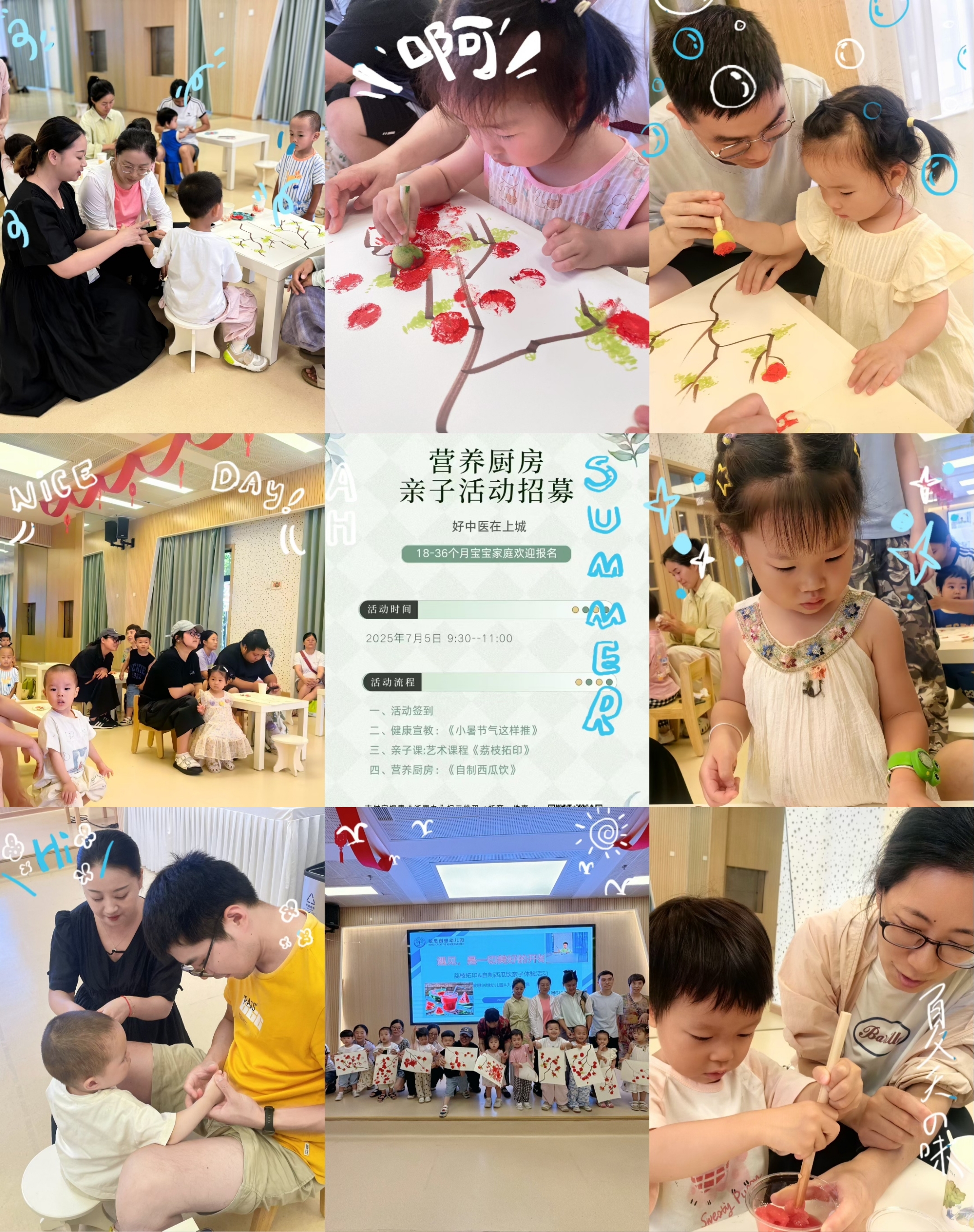 【医防护儿童健康管理中心营养厨房第21期(总第81期)活动】 本期活动围绕小暑节气展开,健康宣教小暑节气的养生要点,分享中医推拿小妙招,帮助孩子们安然度夏;以荔枝拓印为媒介,让孩子在动手实践中感受自然与传统文化,增进亲子协作与创造力;现场教孩子们制作西瓜饮,倡导夏季健康饮食,简单易学又消暑。成功传递了节气养生、艺术美育和科学饮食的理念。