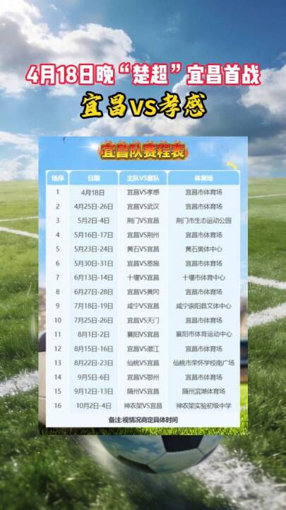 “楚超”宜昌首战正式定档4月18日晚,届时,宜昌队将在宜昌市体育场与孝感队上演强强对决。