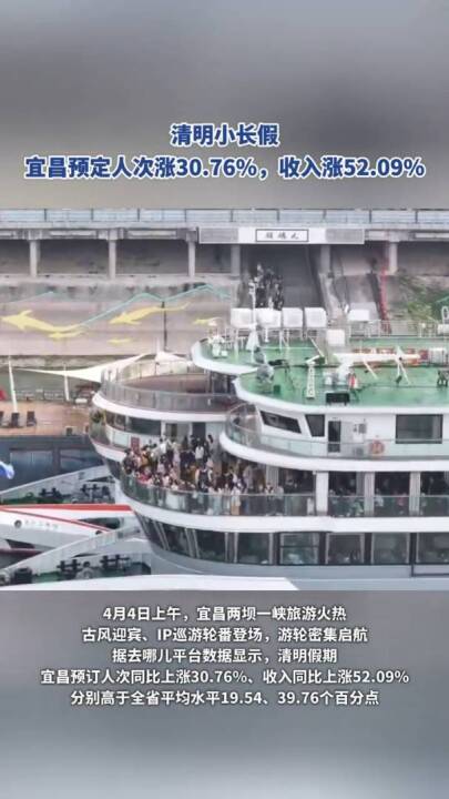 清明小长假,宜昌预订人次涨30.76%,收入涨52.09%。(记者:杨婧;通讯员:李高强、谭凌)