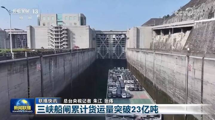央视《新闻联播》播出《三峡船闸累计货运量突破23亿吨》。