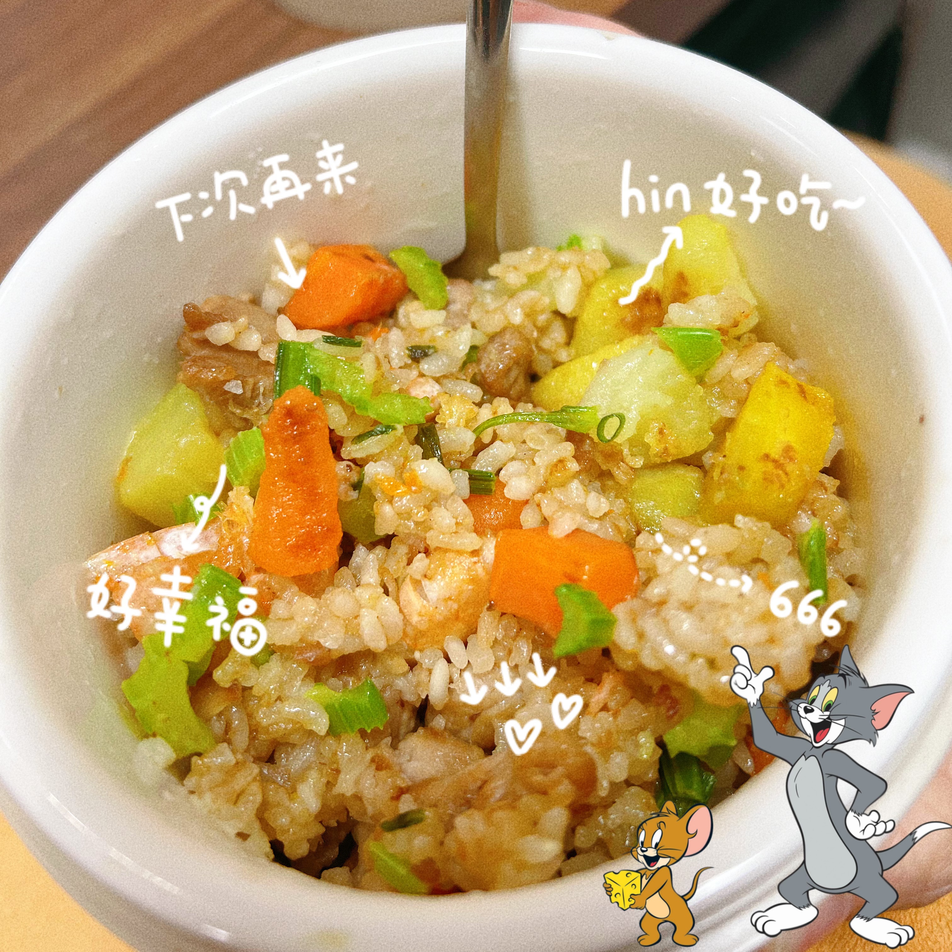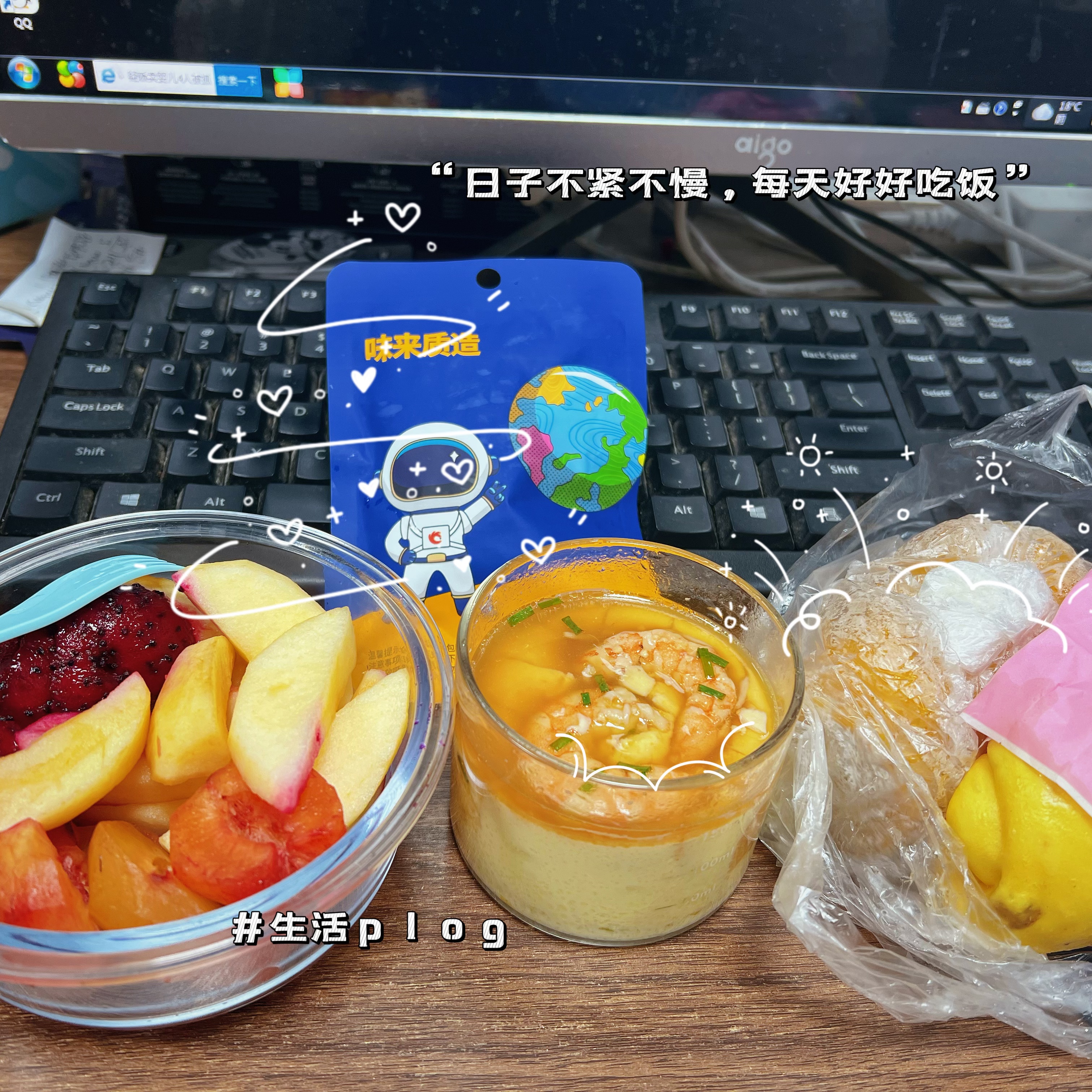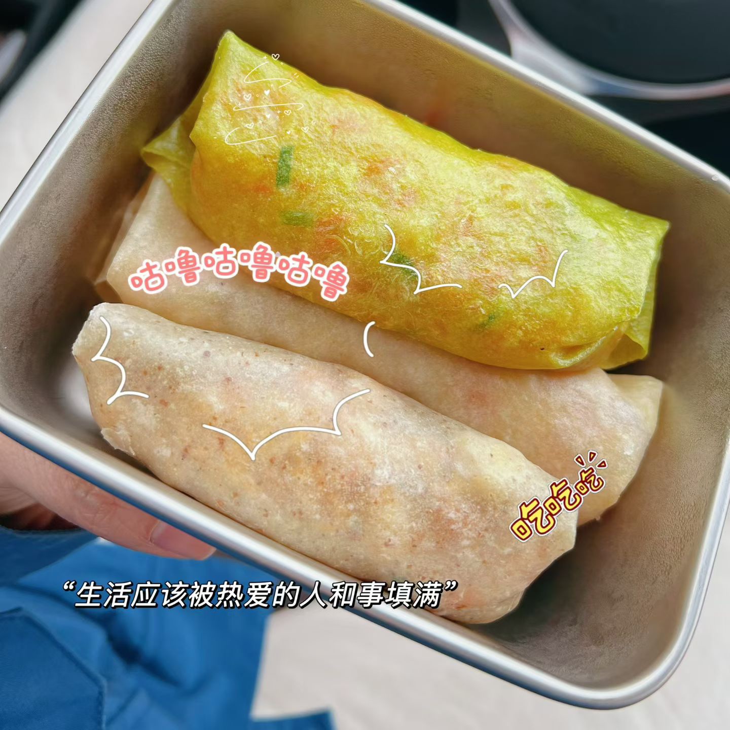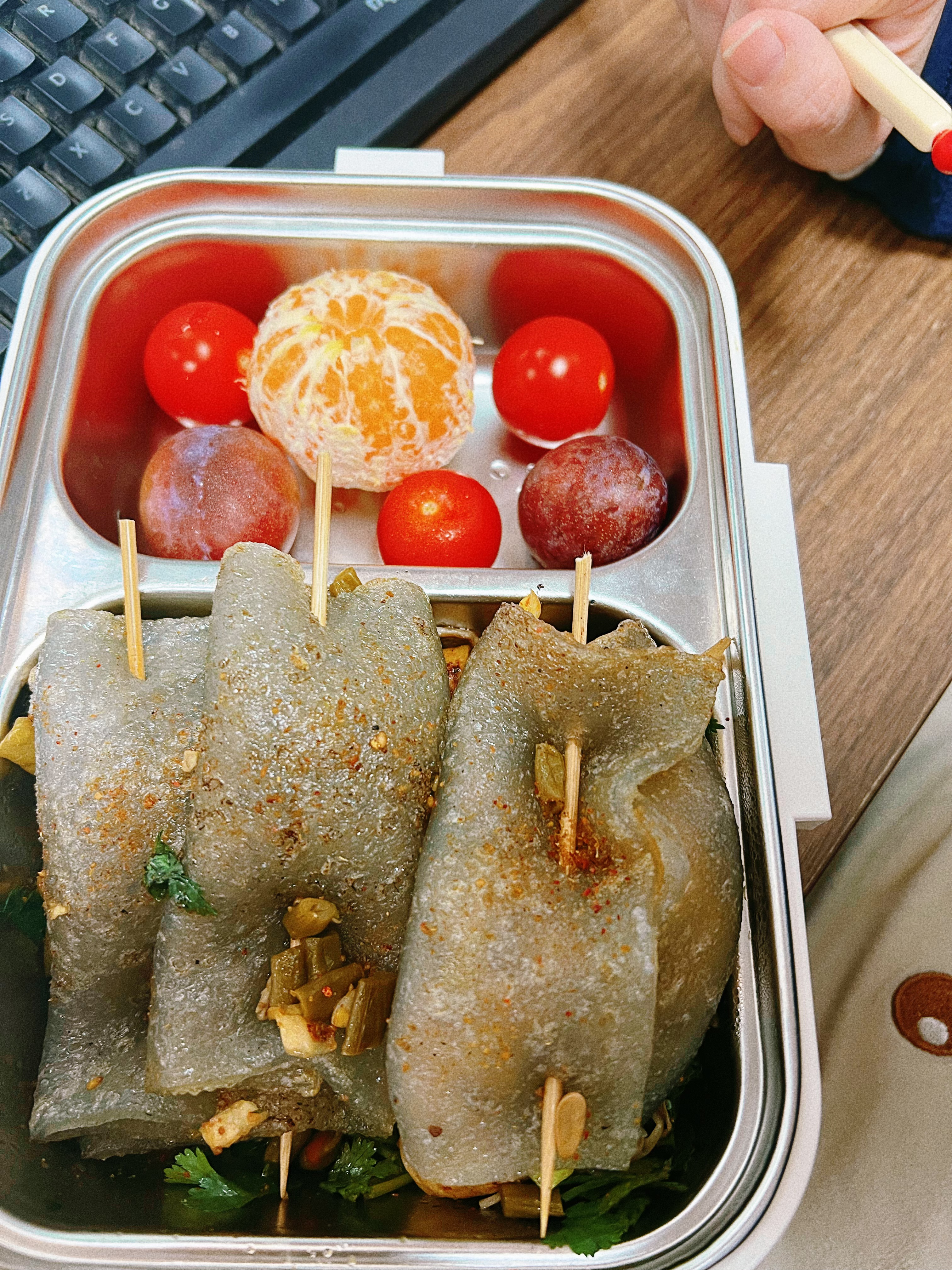 爱的食物盲盒 黄彬倩 循环往复的日子里,在清晨6点30分的闹钟里醒来;踩着傍晚摇摇欲坠的夕阳归家。 不久前的一个清晨,我刚刚发动车子,她穿着睡衣,提着一个蓝白条纹的包,踢踏踢踏地在寒风里一路朝我小跑,车窗摇下来的一瞬,随着一句“记得好好吃饭哟”,蓝白条纹的包被一双冻得通红的手塞进了车窗,沉甸甸的。 “快走吧,你快迟到了!”又是一阵踢踏踢踏。望着她渐去的背影消失在一扇门后,我才缓缓地关上了车窗。 车子穿梭在路上,密集的香气借助着热力从包里飘散开来。封闭的车厢里,浓郁的气味激发了我味蕾的想象。一到公司,我就打开了提包,水蒸气倏地遮盖了镜片,隐约可见大大小小的盒子,我撩起衣角擦拭镜片,六七个盒子挨挨挤挤的,圆的、方的、塑料的、玻璃的、不锈钢的。我随机打开了一个,四个不同颜色的卷饼被整齐地码放在餐盒里,我拿起一个绿色的,一口咬下去,是脆嫩的土豆萝卜丝,搭配着外面韧性的粗粮饼,我从未尝过这样的小食,一口接着一口吃了起来,最后一大口被我塞了进去,赶紧腾出手拿第二个,是鸡蛋虾仁馅……四个卷饼加入了四种不同口味的馅,待到餐盒空空如也的时候,我才想起,还有其他的餐盒。 随机打开一个,卤制的牛肉切成了薄片,整齐地码放在餐盒的一角,剥了壳的虾仁,一切为二的水煮蛋,所有的食材上面都铺了几片花朵形状的胡萝卜片,星星点点的黑芝麻丰富了层次。一个圆形的透明玻璃杯装着嫩黄的鸡蛋羹,虾仁和葱花让蛋羹不再单调。另一个盒子里汇聚了各色的水果:球形的红心火龙果、去皮去核的李子,晶莹的阳光玫瑰,撞色的搭配让味觉被调动起来。 她用心地记录了我的口味和偏爱,每天烹调后放入餐盒里,却不会提前告诉我里面的菜肴,带着餐盒上班的日子这种猜想,让原本枯燥的上班之路,也变得有了些许盼头。 每次午休,随着“咔哒”一声,锁扣弹开。有时,是一道看似寻常的手撕包菜,但包菜烧制得恰到好处,爽脆可口,汁水丰盈,有时,会是我前几日无意中念叨过的某道菜,比如红烧牛肉,她竟真的做了,酱色浓郁,香气扑鼻,底下还垫着吸饱了汤汁的笋衣。米饭也常有变化,有时掺了金黄的小米,有时拌着紫莹莹的米。 我渐渐地脱离了同事们的外卖大队,后来,办公室也掀起了一阵带饭的热潮。我的工位,永远是最热闹的,他们都会端着自己的饭盒围过来,夹上几筷子中意的菜,方才满意地离开。 没有昂贵的食材,没有复杂的摆盘,可就是这每日不同的组合,让每一次揭开盖子,都成了一次真实的触动。我曾以为,生活的惊喜,来自诗和远方。是她,用这日复一日的“食物盲盒”告诉我,最深厚的情意,往往就藏在最寻常的一蔬一饭里。它治愈我的,不单单是午间那片刻的饥肠辘辘,更是我对这循环日常可能产生的倦怠与麻木。 日子依旧是那个日子,蹑着脚步奔忙、琐碎。但因为有了这爱的盲盒,我的内心也变得饱满、盈实。