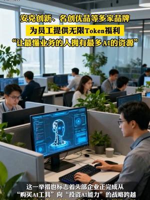 AI算力自由成职场新顶配安克创新、名创优品等多家品牌为员工提供无限Token福利,“让最懂业务的人拥有最多AI的资源”。