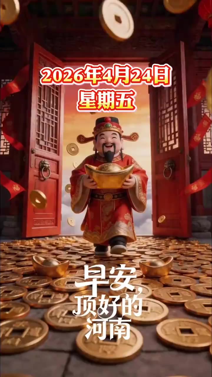 4月24日早安!朝阳启,财门开,财神正南送福来;航天逐梦,财运同行,愿你事业冲天、日进斗金!