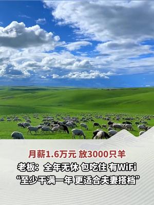 月薪1.6万元,放3000只羊,老板:全年无休,包吃住,有WiFi“至少干满一年,更适合夫妻搭档”