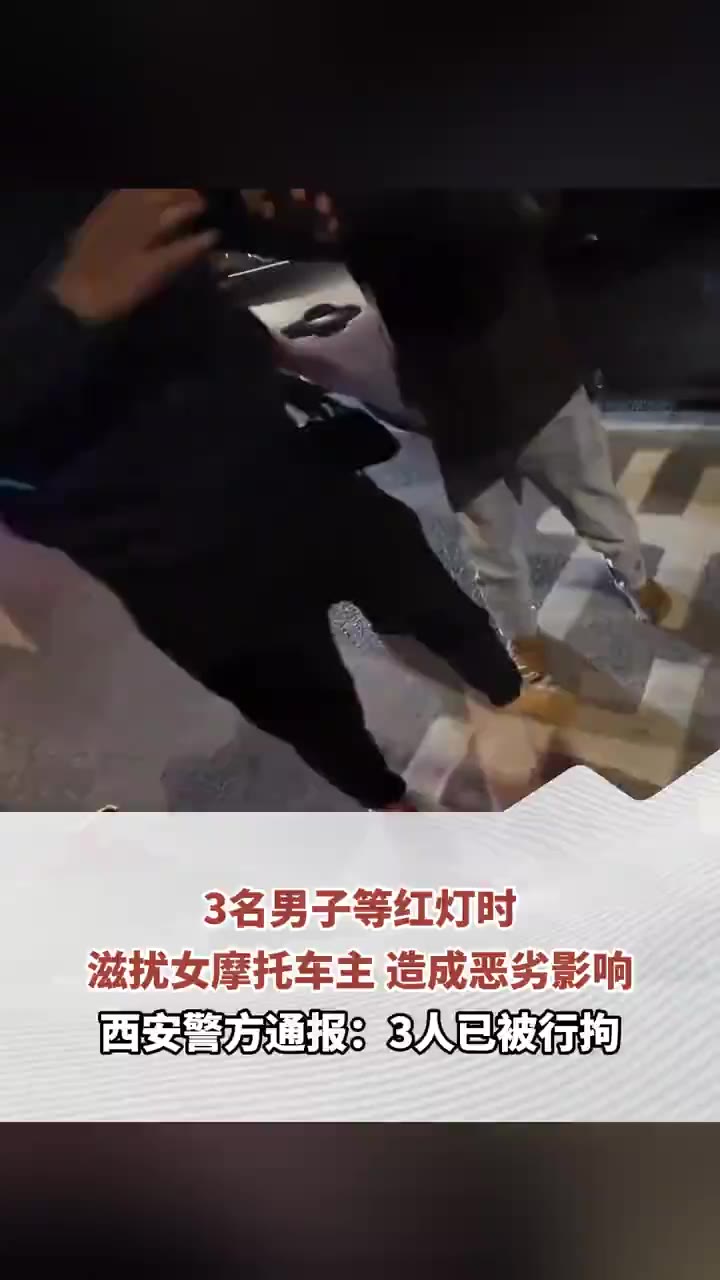 3名男子等红灯时滋扰女摩托车主,造成恶劣影响,西安警方通报:3人已被行拘