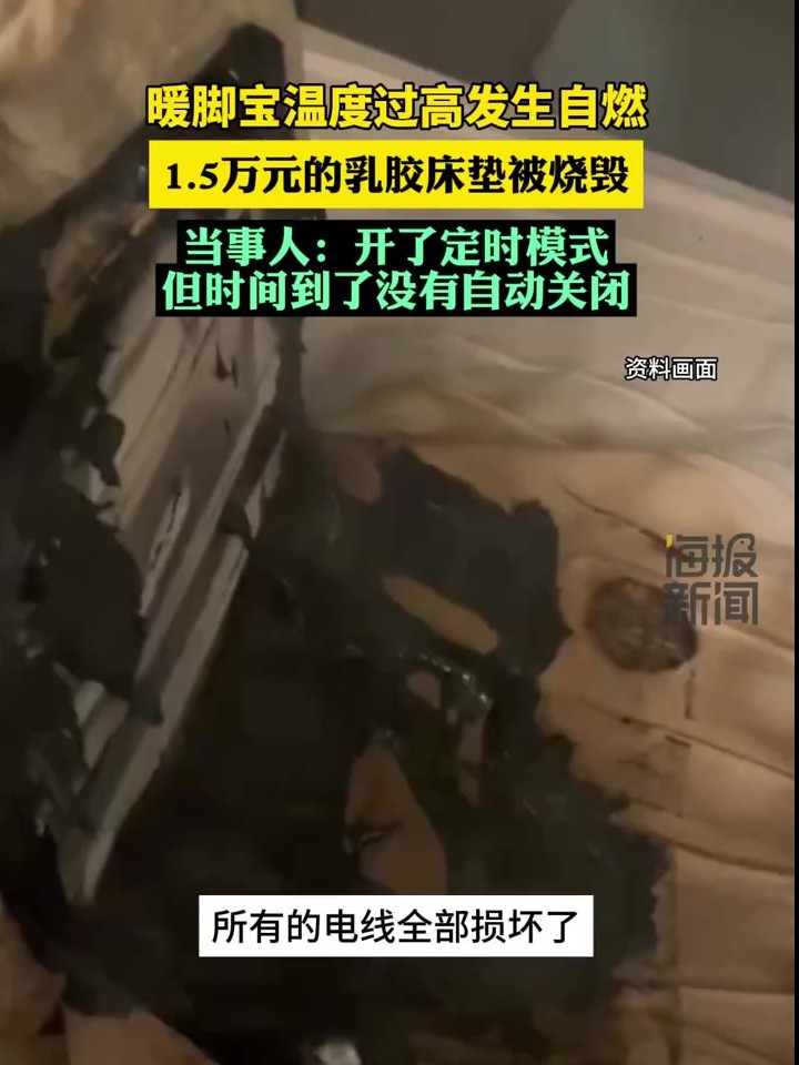 暖脚宝温度过高发生自燃险些酿成火灾 当事人:定时模式时间到了没自动关闭