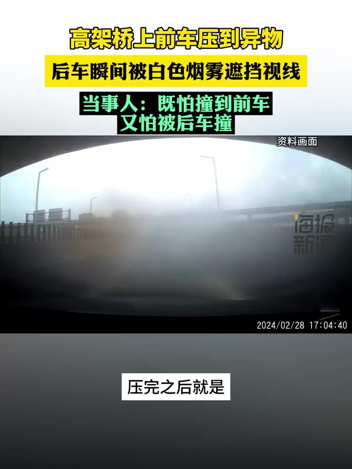 司机高架桥上被白色烟雾遮挡视线 当事人:既怕撞到前车,又怕被后车撞