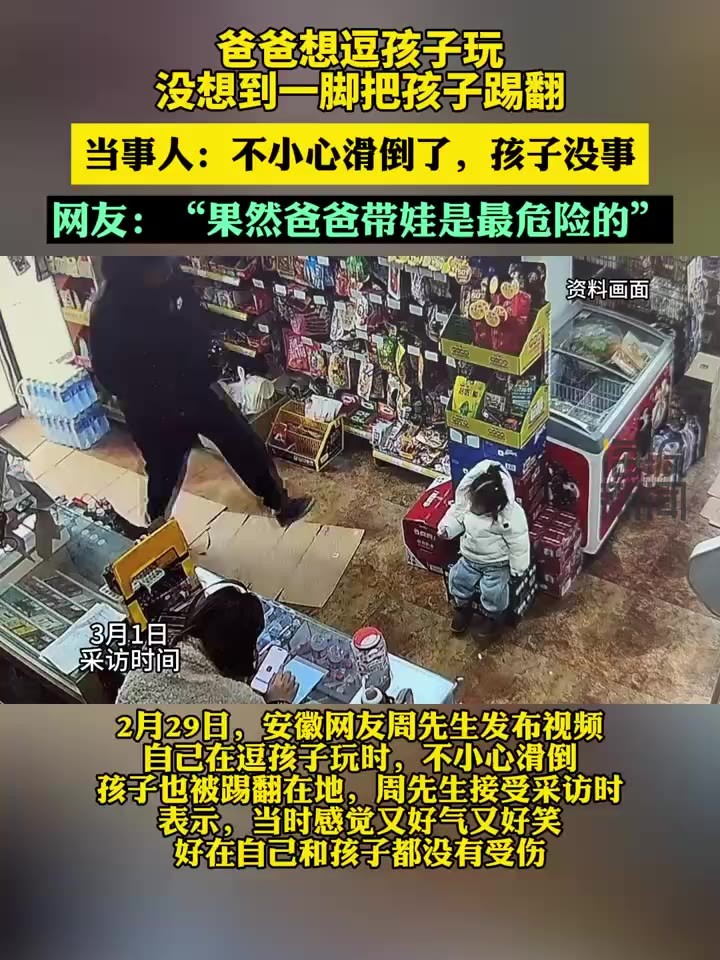 爸爸想逗孩子玩没想到一脚把孩子踢翻 当事人:自己和孩子都无大碍