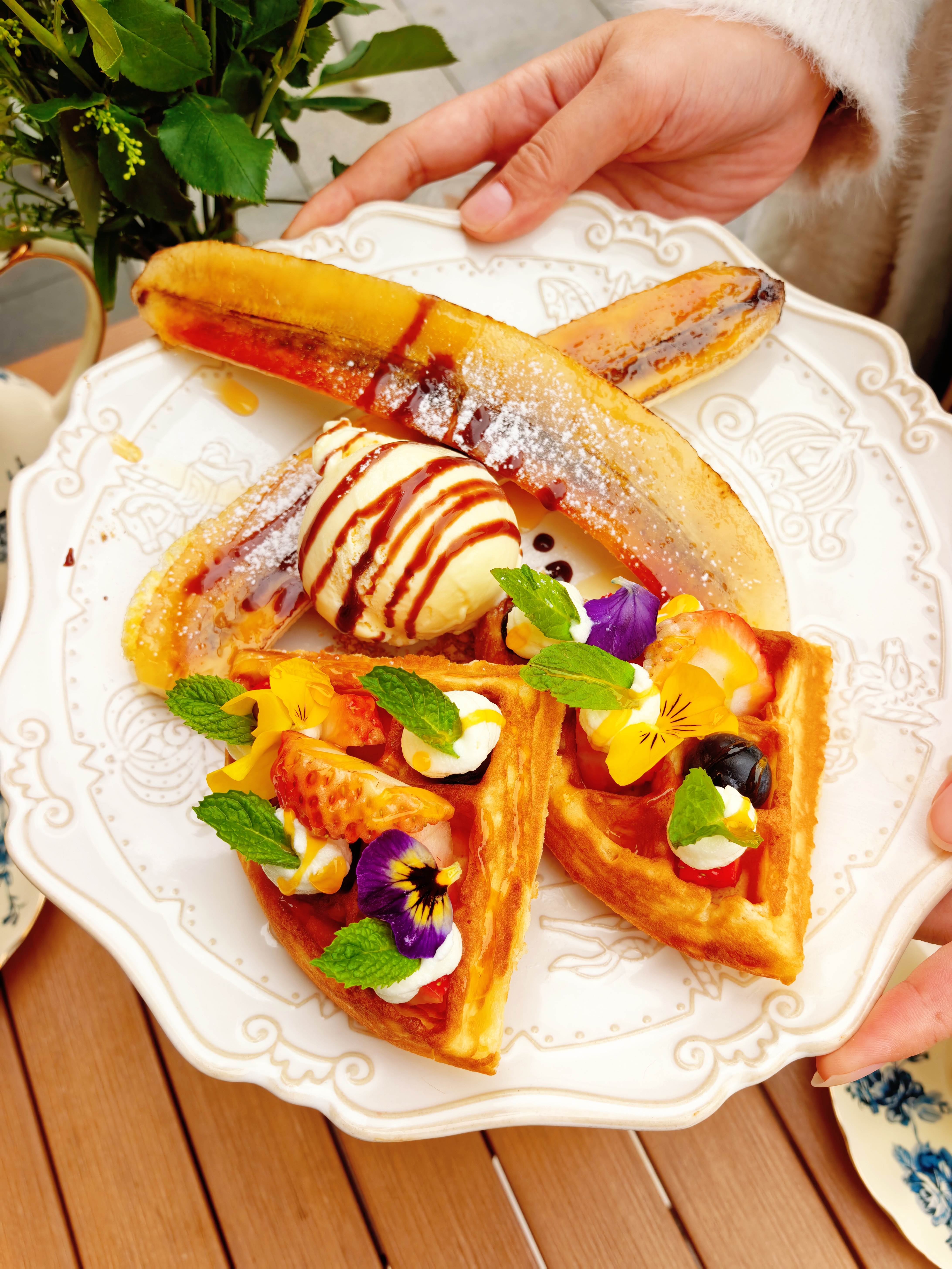 🌿 周日午后,和闺蜜躲进常德路的小巴黎。 推开「La Blanche Bistro」的门,像是掉进法国电影里。阳光透过玻璃窗,落在木桌与藤椅上,周末的满座反而让空气里飘着热闹又温柔的絮语。 🍓 先点一壶「浆果茶」 酸酸甜甜的香气漫开来,草莓与蓝莓的风味在热水中轻轻绽放。握着温热的杯子,仿佛捧住了某个悠闲的午後剧本。 🧇 「香蕉华夫饼配冰淇淋」端上来时,心都软了。 焦糖香蕉裹着脆甜的亮衣,华夫饼蓬松得像云,一刀切下,是周末独有的、慢吞吞的满足。旁边的香草冰淇淋悄悄融化,奶香裹着春天的甜,像一种温柔的安全感。 🍰 最后是「青提水果挞」 挞皮酥脆,青提水润清甜,一口下去,仿佛咬住了三月的风。 和闺蜜有一搭没一搭地聊天,从生活琐事到遥远梦想,时间在这里变得透明。窗外人来人往,窗内刀叉轻响,我们像暂时寄存在这片留白时光里的两颗糖。 原来幸福可以这么简单——一个午后,一家小店,一份甜点,一个懂你的人。
