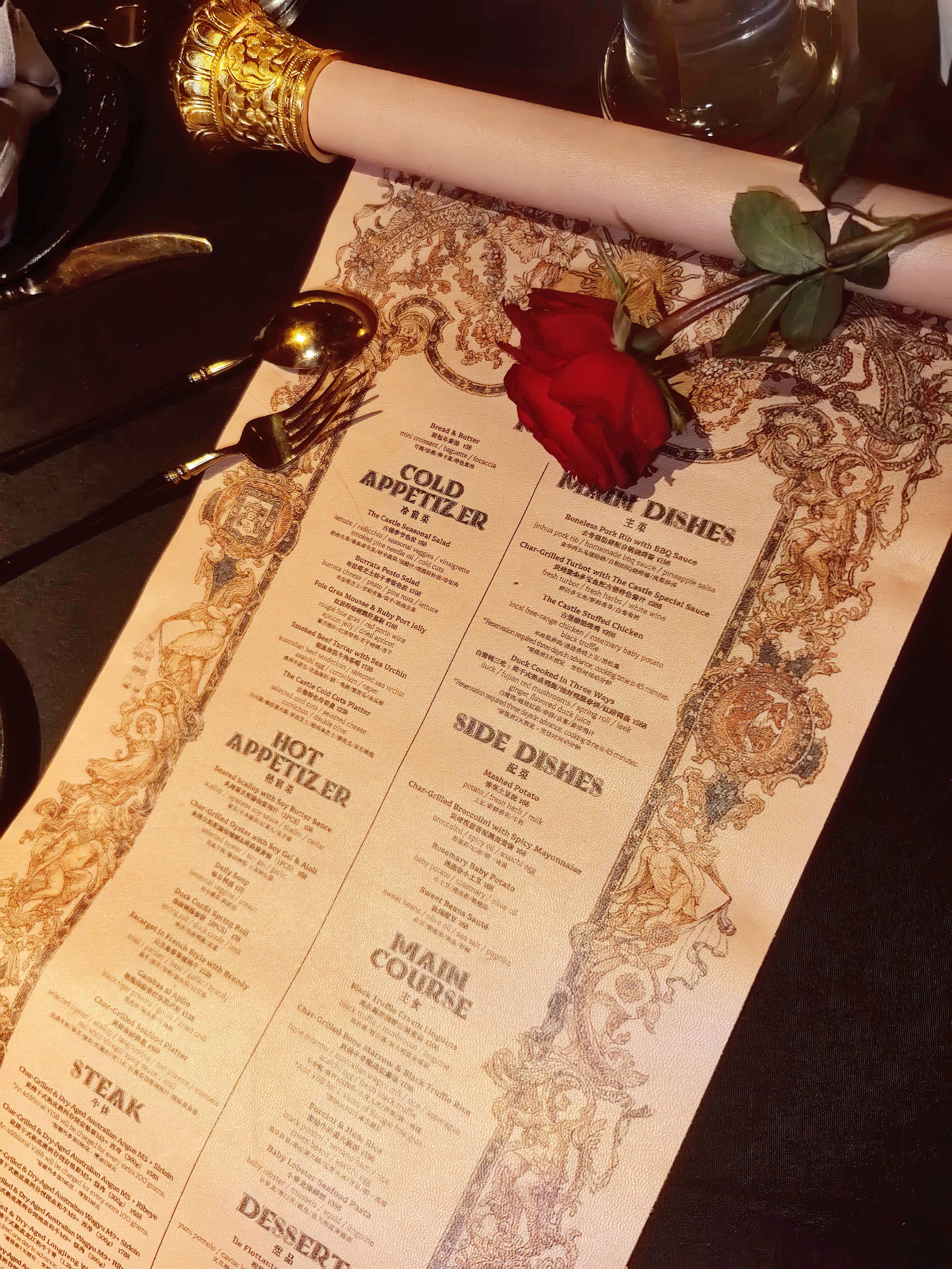 推开一扇门,误入童话世界|古堡餐厅 周末的夜晚 和朋友相约这家名叫“The Castle”古堡的餐厅 位于外滩源的黄金地段 从踏进大门的那一刻起 就仿佛闯进了另一个时空🕰️ ⛪️环境: 复古的欧式古堡风格 骑士的银色盔甲立在旁 洁白的维纳斯雕塑静静伫立 古老的国王油画悬挂在斑驳的墙上 每一处细节 都诉说着悠久的历史与浪漫 我真的好像那个迷了路的灰姑娘 在古堡里徘徊 却邂逅了一场关于味蕾的“真爱”💘 穿着得体西装的侍者 温柔地将迷路的我引至座位 递上的菜单竟是一卷复古的“羊皮卷轴” 仪式感瞬间拉满 电影般的开场🎬 📜美味探险: ▫️「古堡季节色拉」 西班牙烟熏火腿的咸香 与清新爽脆的时蔬巧妙结合 再碰上名为“橄榄油”的香水 是一口打开味蕾的序曲 ▫️「烟熏海胆和牛塔塔」 海胆的鲜甜与和牛的油脂香 在烟熏的香气中融合 细腻柔滑,风味层次很妙 ▫️「白兰地香草焗蜗牛」🔥 侍者现场淋上白兰地香草酱 点燃一簇幽蓝色的火焰 视觉惊喜拉满! 火焰熄灭后,蜗牛口感Q弹鲜美 带着酒香与香草的余韵 是味觉与视觉的双重享受 ▫️「鸭三吃」 一道菜解锁三种体验 从酥脆的鸭皮到鲜嫩的鸭肉 再到一碗温润的汤 惊喜连连,满足了对鸭肉的所有幻想 ▫️「炭烧牛骨髓黑松露饭」 炭烧的牛骨髓油润香浓 拌入颗颗分明的米饭 再刨上奢侈的黑松露 每一口都是满满的油脂香气与松露野香 罪恶但幸福到眩晕🍚 ▫️「提拉米苏雪茄」 造型满分! 以“雪茄”的形态呈现 巧克力外壳包裹着经典的提拉米苏内馅 咖啡酒香细腻浓郁 为这场古堡盛宴画上浪漫的句点 ✨ 在这里用餐 不仅仅是品尝美食 更是一场穿越时空的童话体验 适合纪念日、生日 或任何一个你想成为“公主”的夜晚