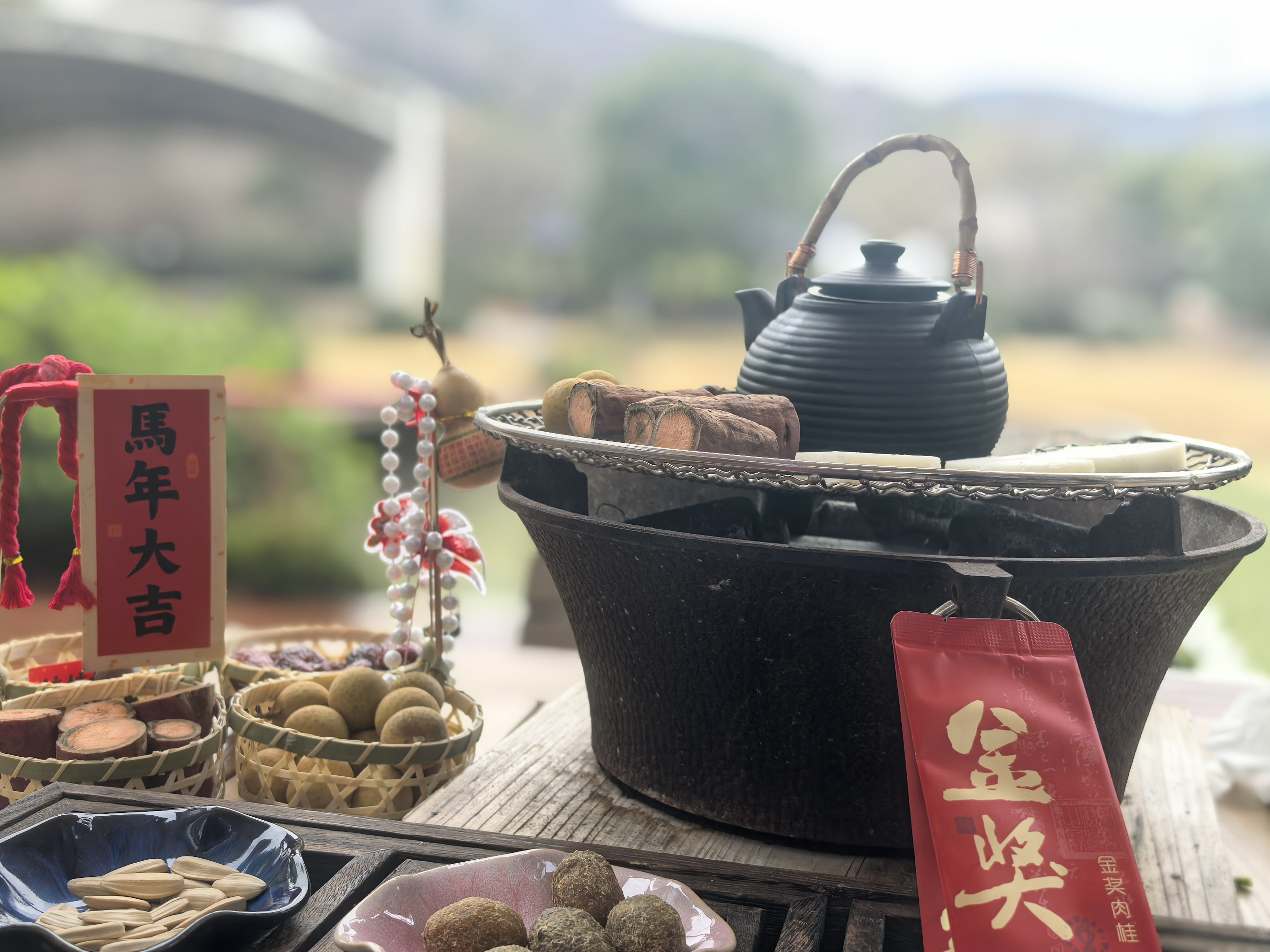 马年大吉!炭炉暖,茶香浮,武夷岩茶配烤红薯,龙眼坚果摆满竹篮。山景作幕,红饰点睛,珍珠葫芦添趣,木桌一席,把年味泡进这杯春茶里~马上有个过年的搭子