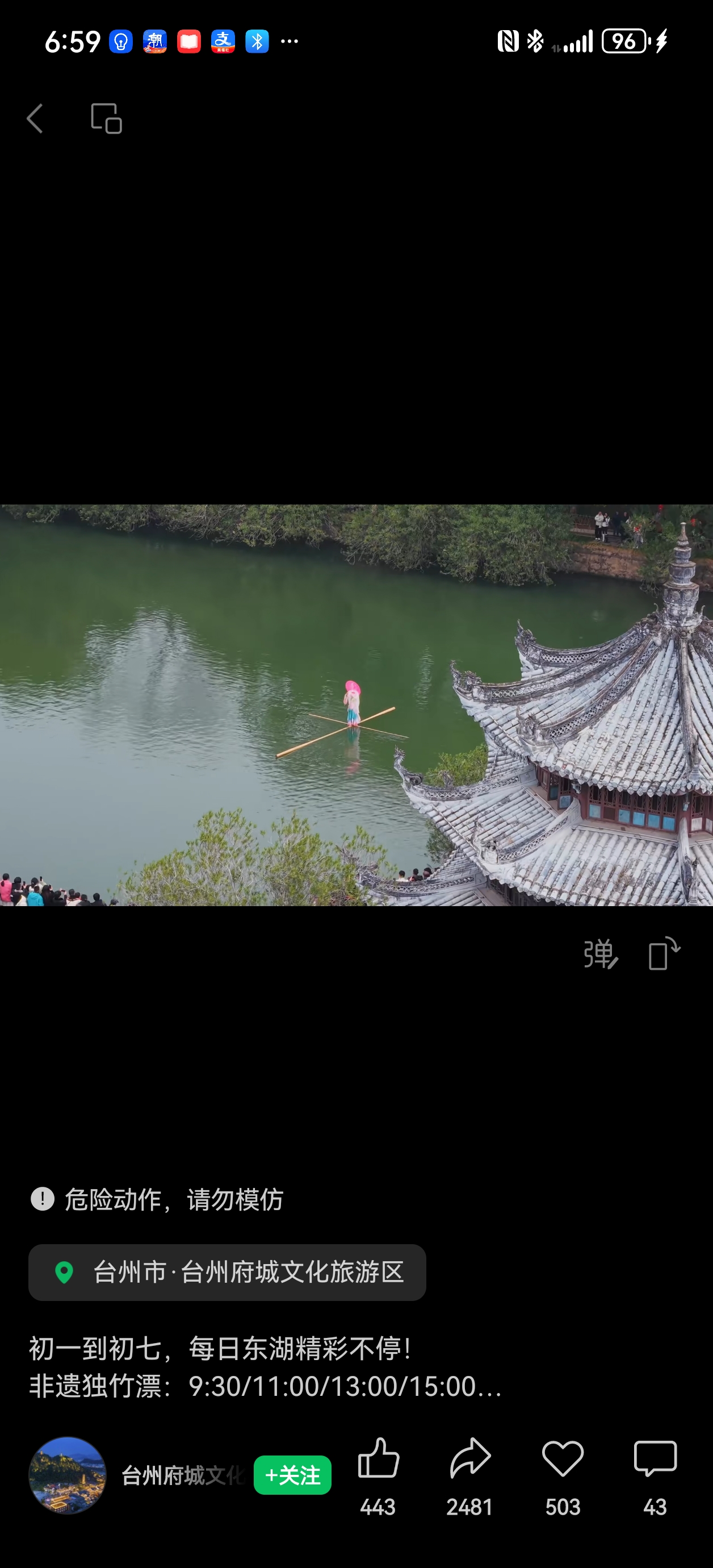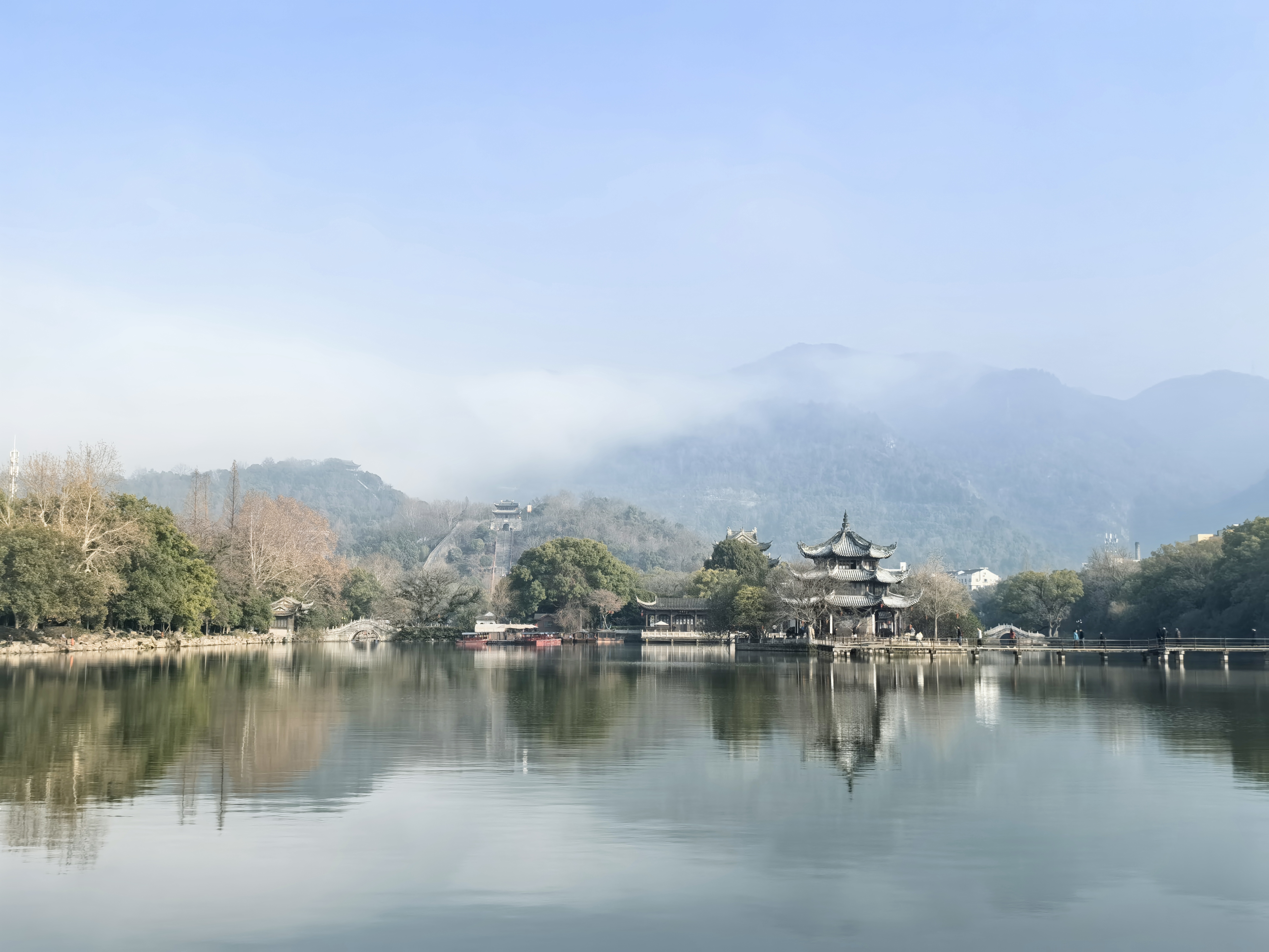 台州府城东湖边,独竹漂划开冬日静谧,飞檐翘角倒映水面,芦苇轻摇,远山如黛。晴空下,古亭与波光共舞,随手一拍都是年味十足的中式大片~#年味淡了吗?#