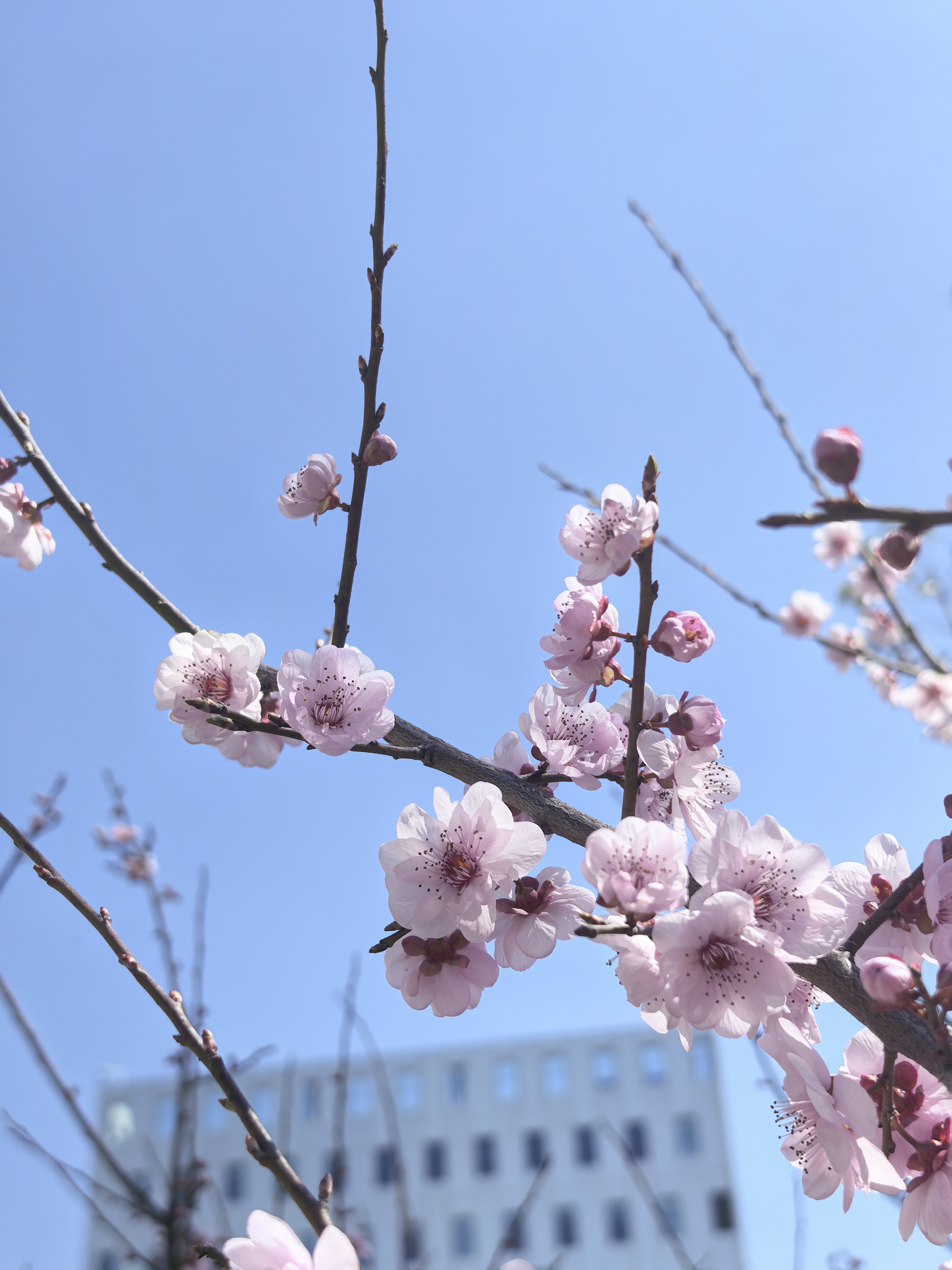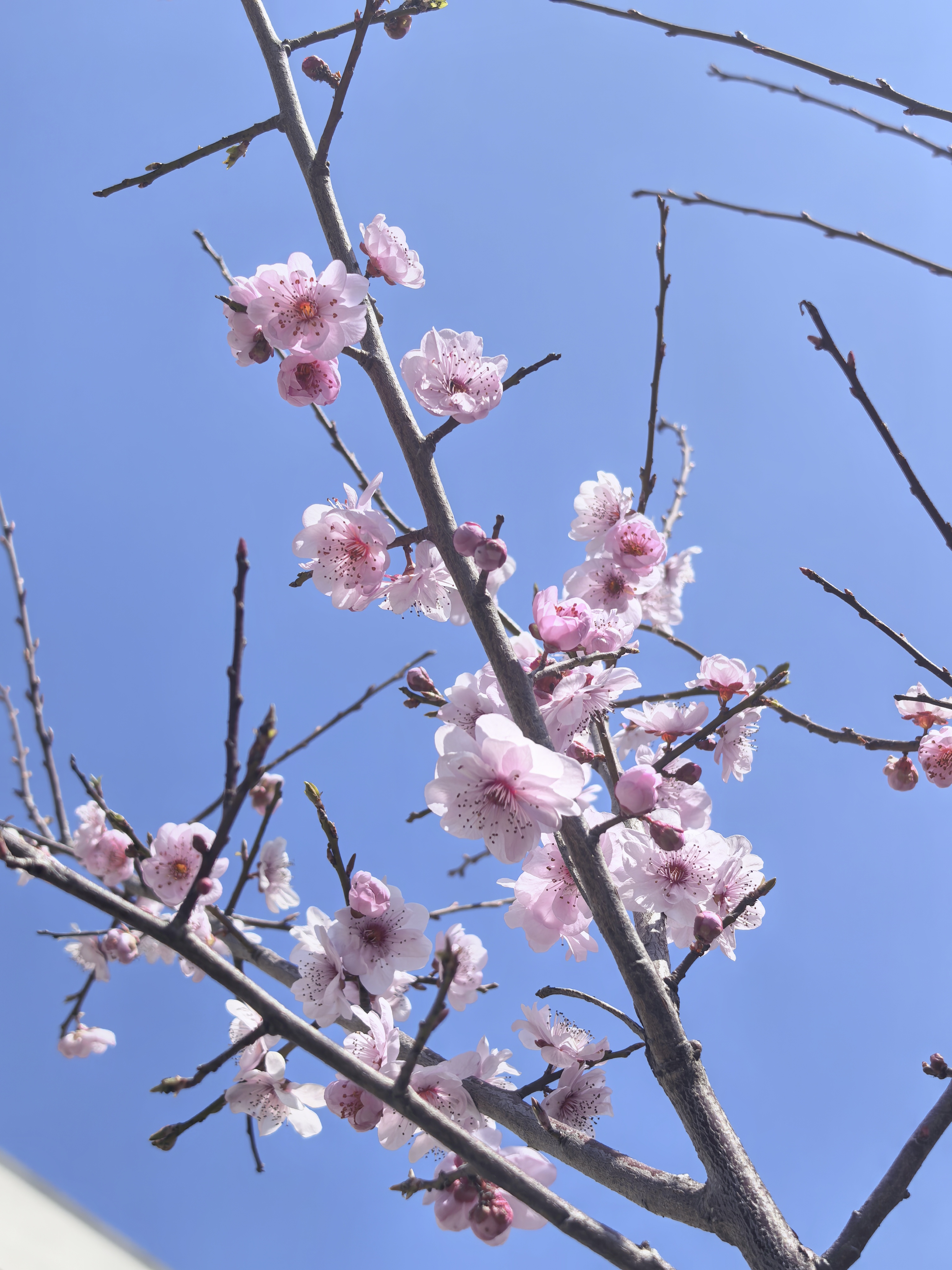 今天阳光刚好,蓝天当布景,随手一拍就是粉嫩春日大片~梅花枝头闹哄哄,花蕾与盛放同框,城市高楼悄悄退成温柔背景。春天哪用找?它正踮着脚,在枝头晃呢~
