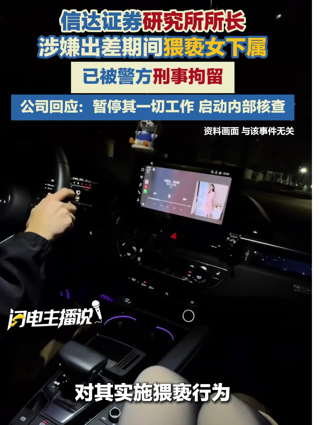 信达证券研究所所长涉嫌出差期间猥亵女下属 已被刑拘
