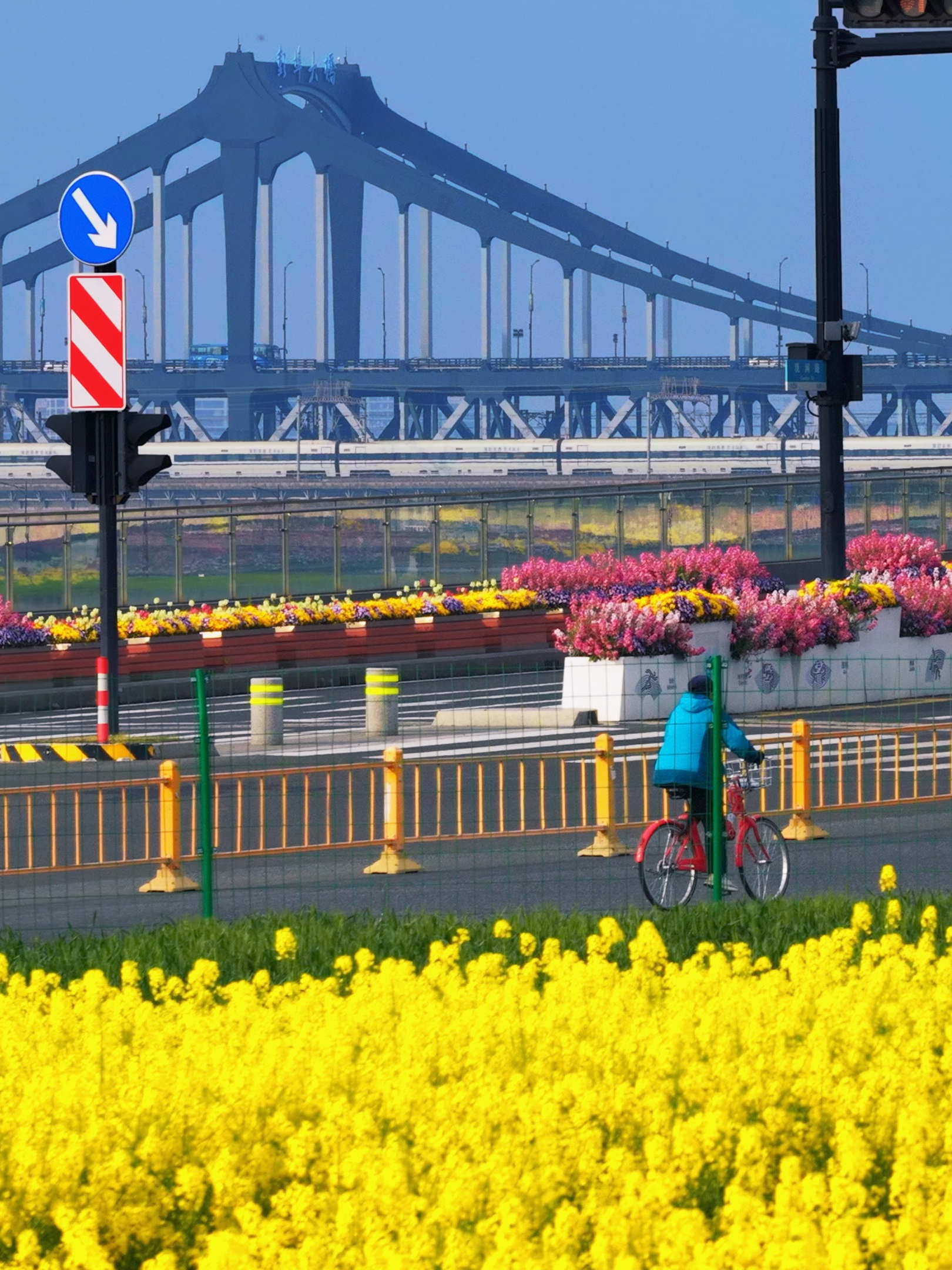 在杭州滨江的高楼大厦附近,还藏着这么一大片宝藏油菜花海,不用出远门,就能欣赏美丽的春天。