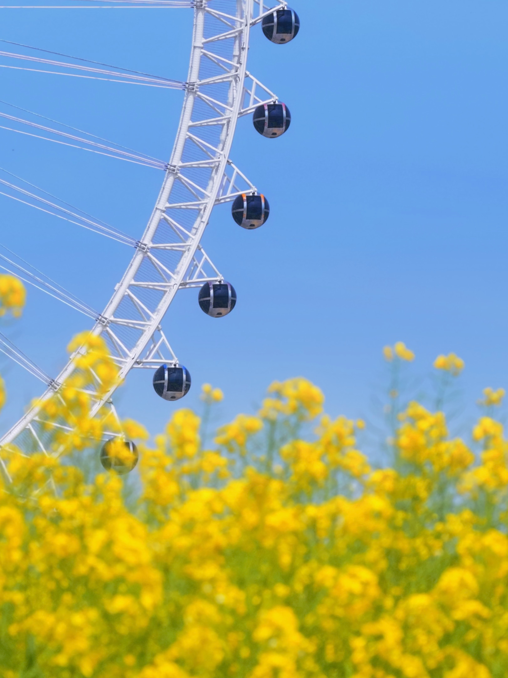 临安天目未来谷油菜花盛开,金黄色油菜花与蓝天下的摩天轮同框,童话里的场景就是这样吧。